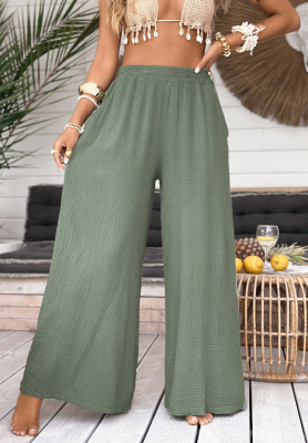 Mušelínové kalhoty wide leg Paradise Bay khaki