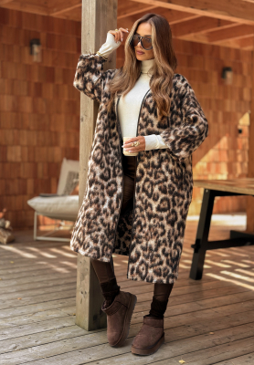 Dlouhý vlněný kardigan s leopardím vzorem Sultry Fave béžový