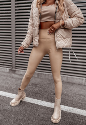 Legíny z imitace kůže What’s Your Number béžové