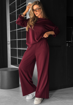 Žebrovaná souprava halenka a kalhoty wide leg Don’t Stop víno