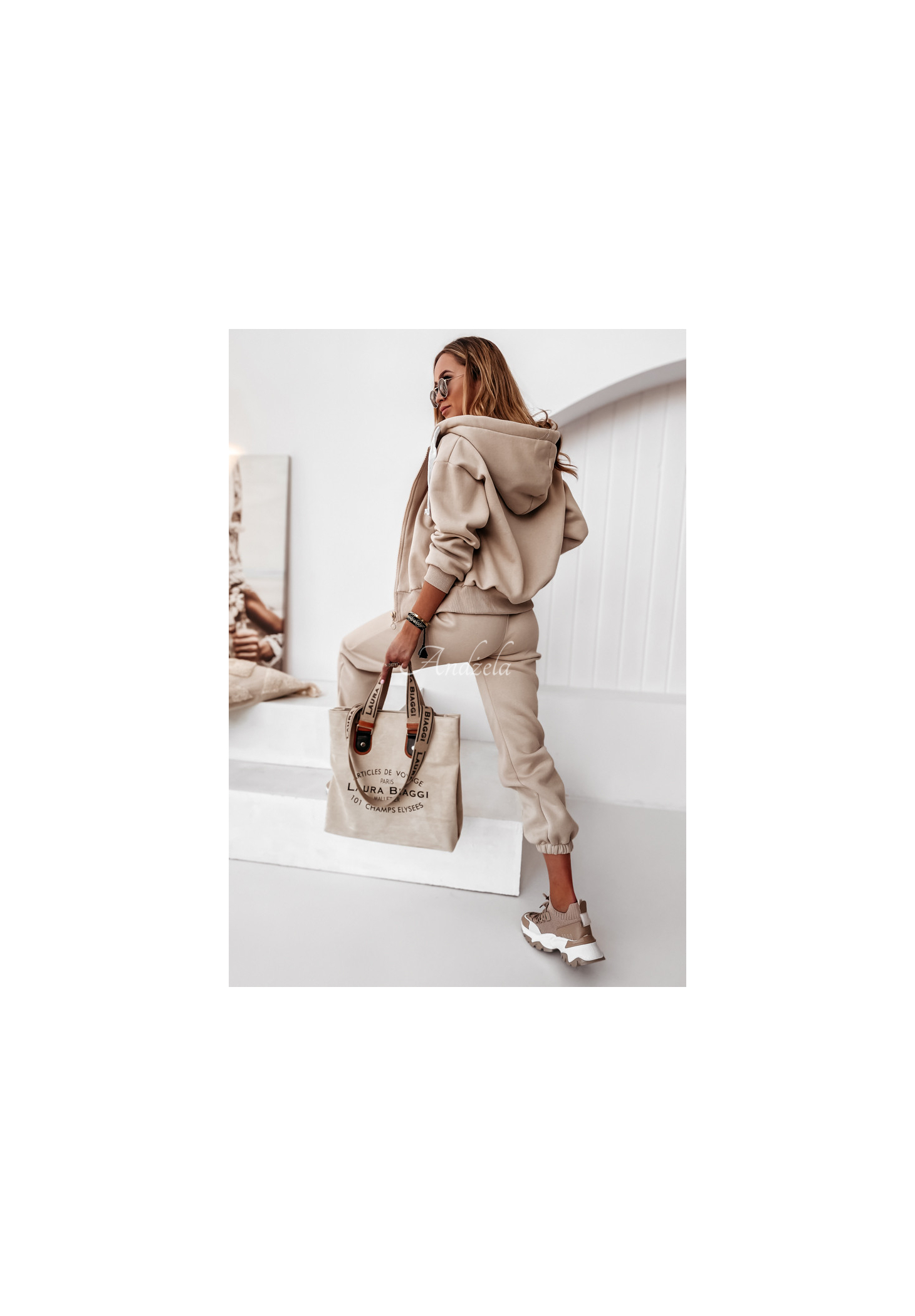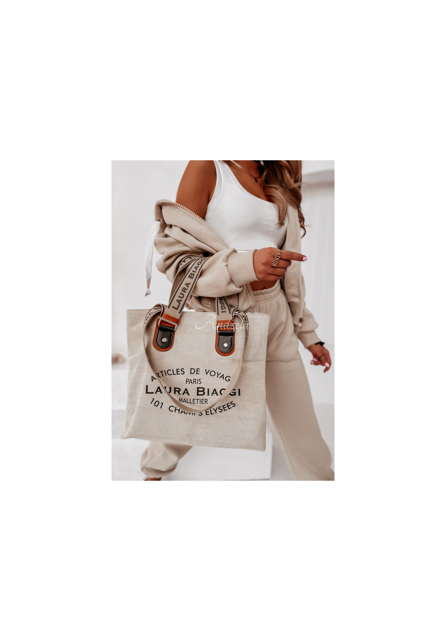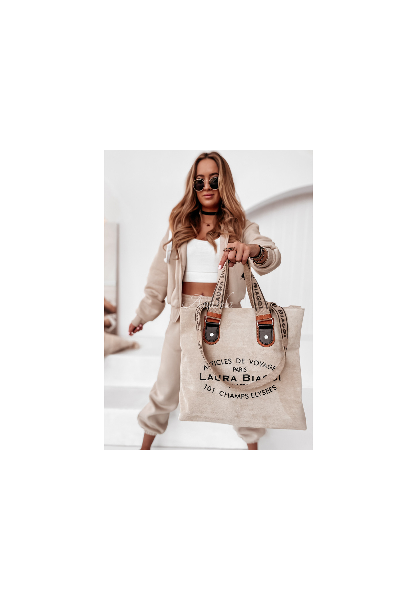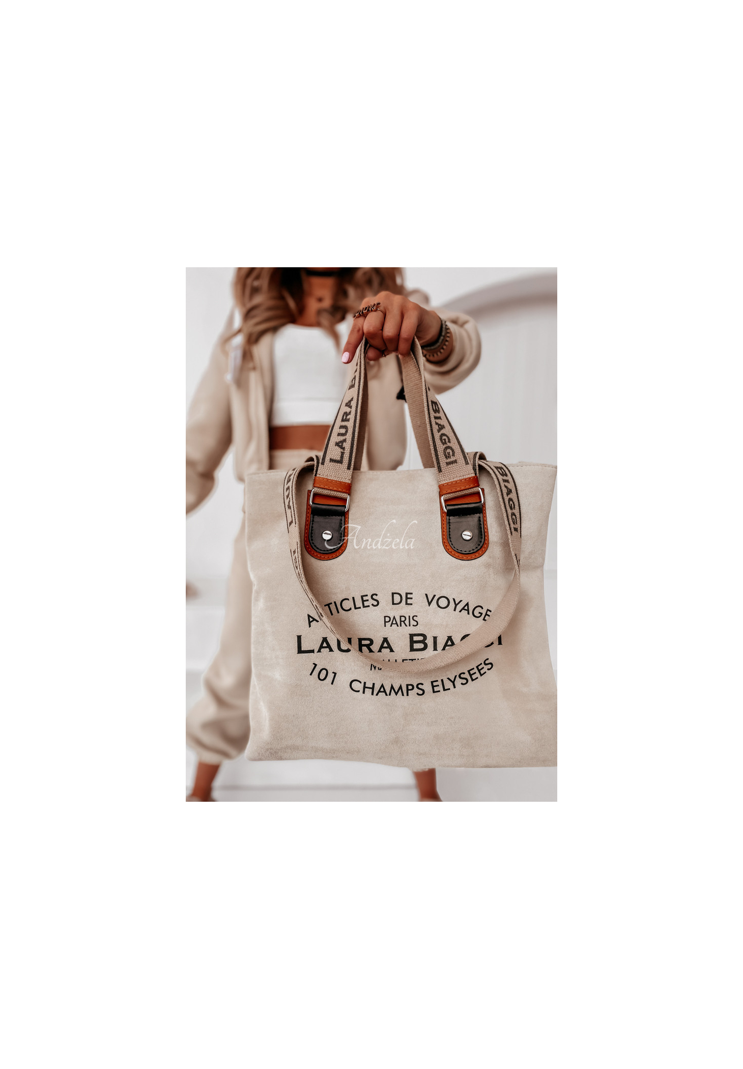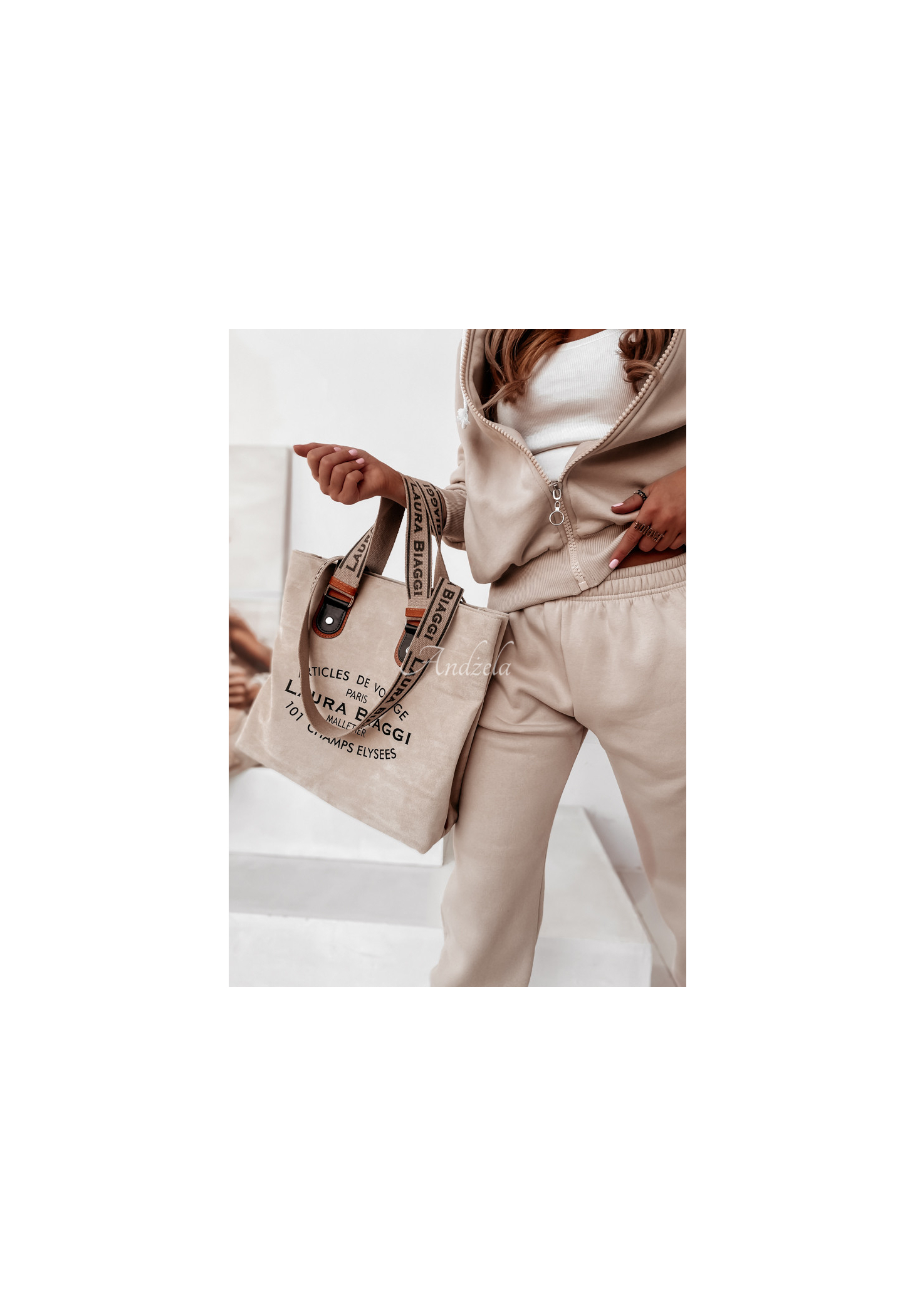 Stylová kabelka z materiálu imitujícího semiše. Návrh se vyznačuje minimalistickým potiskem a širokými popruhy. Vypadá moderně a originálně a navíc se pohodlně nosí. Model bude perfektní jako doplněk mnoha každodenních stylizací.