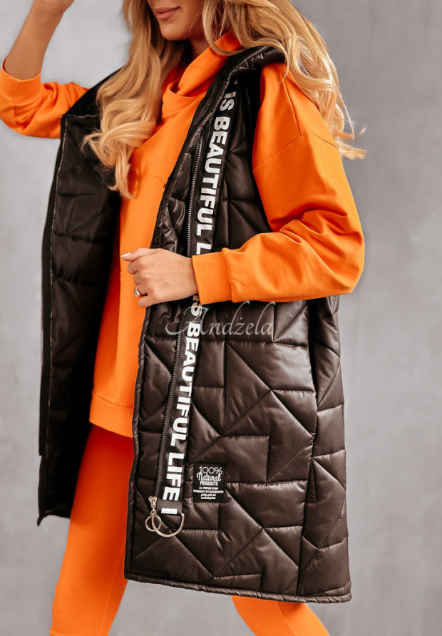 Prošívaná vesta se vzory Just You Černo-hnědá