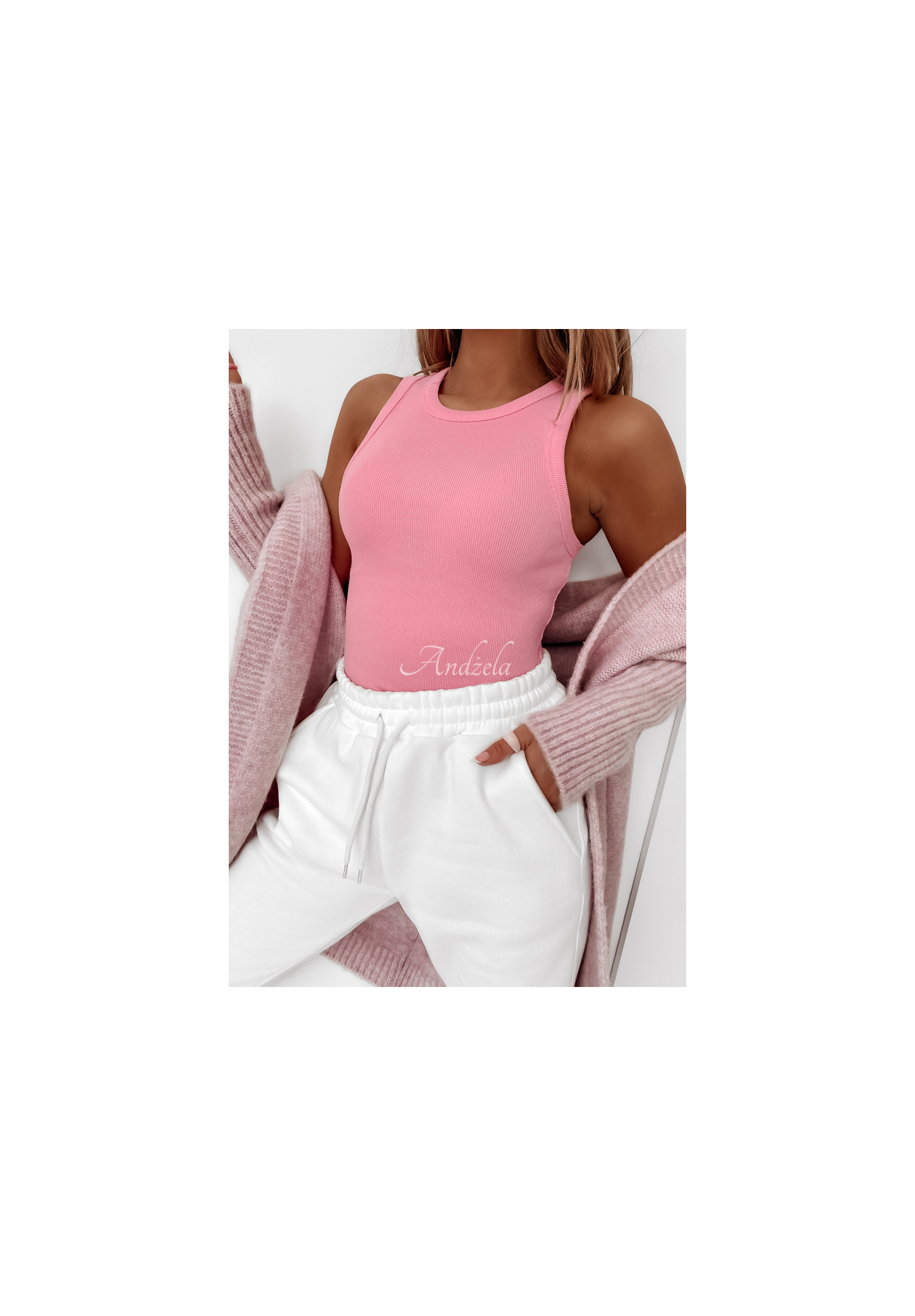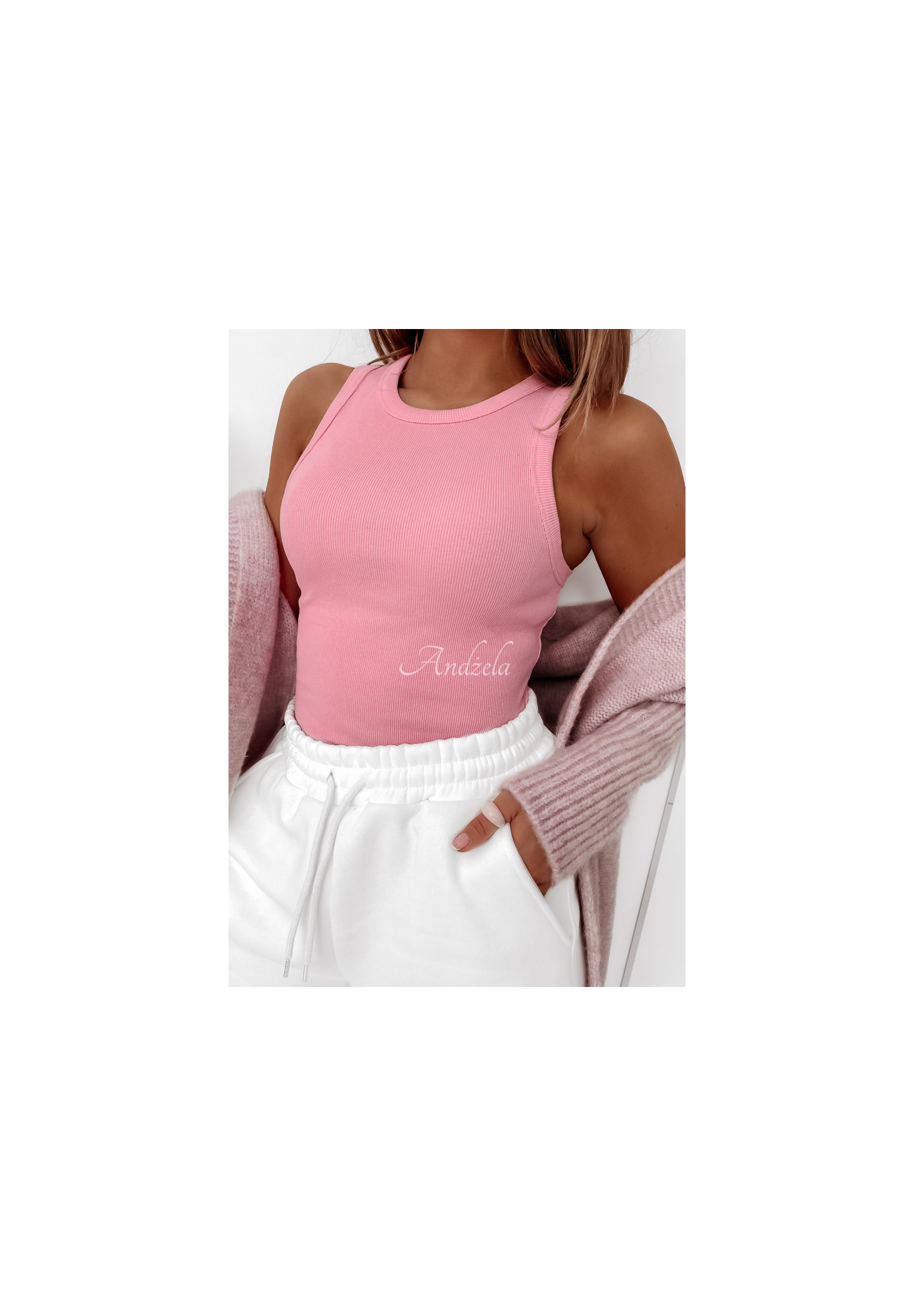 Bavlněný vroubkovaný top na ramínka je ideální na každý den! Model se díky elastickému materiálu dokonale přizpůsobí postavě. Tento návrh je skvělým základem pro volné, sportovní stylizace. Produkt je k dispozici v několika barevných variantách.