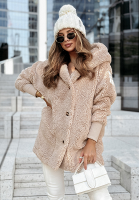 Dlouhý kabát z imitace kožíška Helsinki béžový