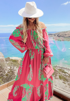 Viskózové šaty se vzorem s páskem She Won That růžovo-fialové