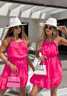 Šaty s nabíranými rukávy a páskem Crazy About You růžová