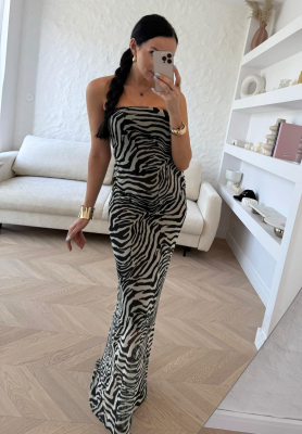 Maxi šaty se zebřím vzorem La Milla Beauty Is Goodness bílo-černé