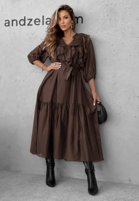 Šaty z lyocellu s volánky Something Begin čokoládová
