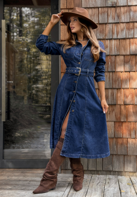 Džínové šaty s páskem Playa Del Carmen modrá