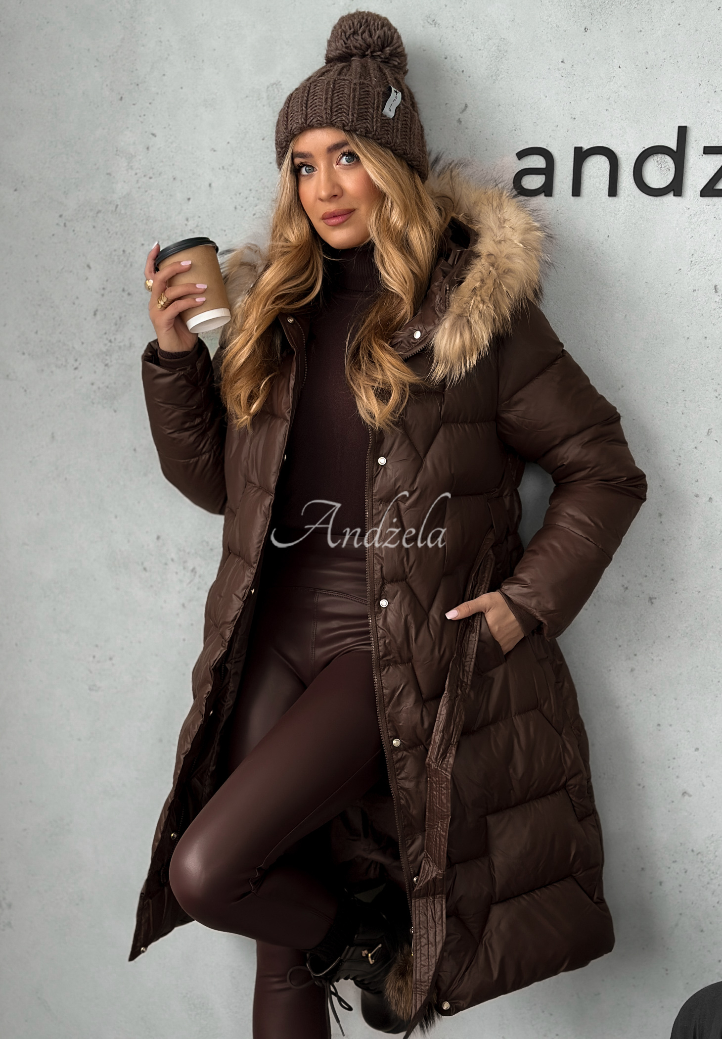 Modelka má výšku 170 cm, prezentuje velikost 36/S.
