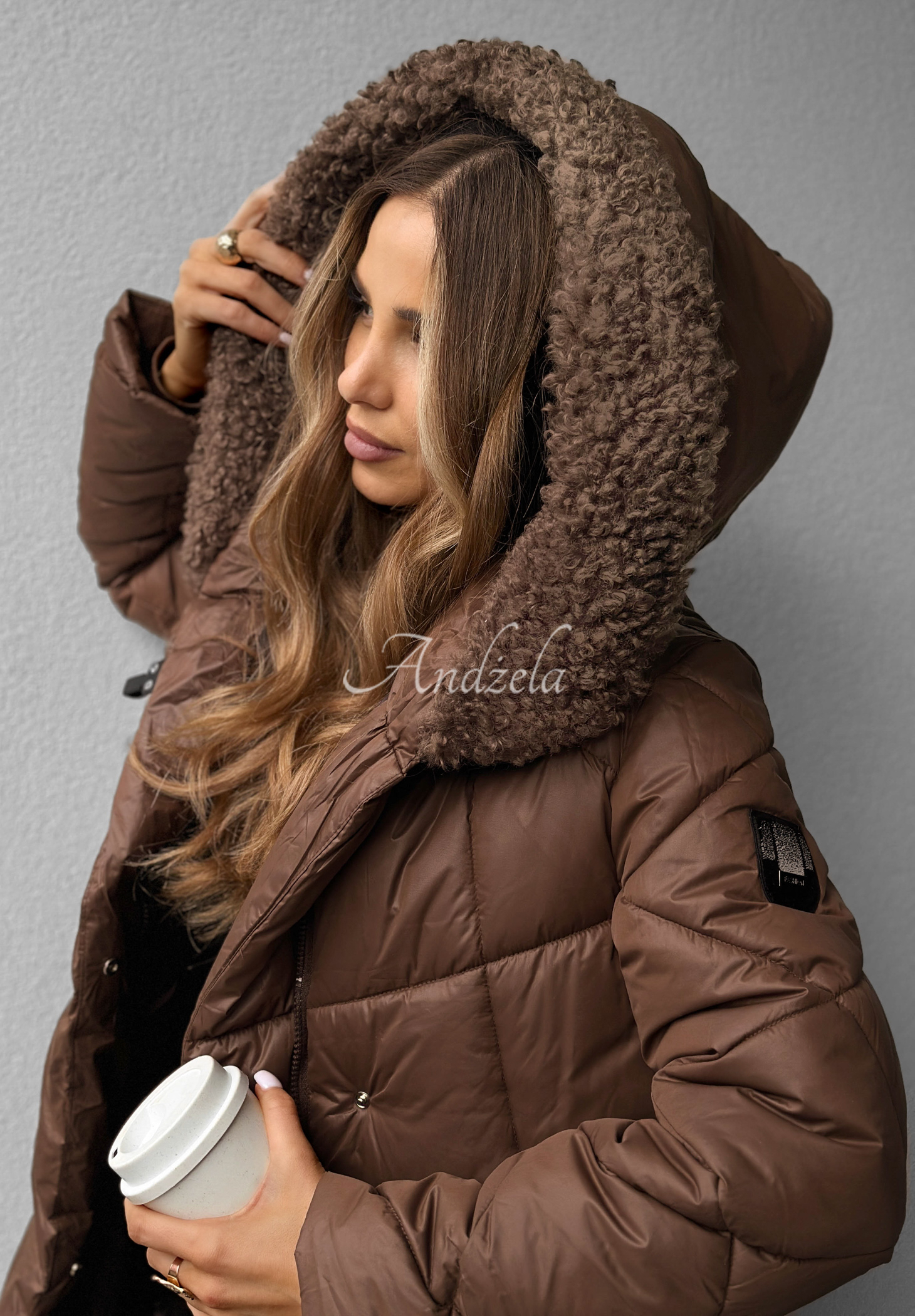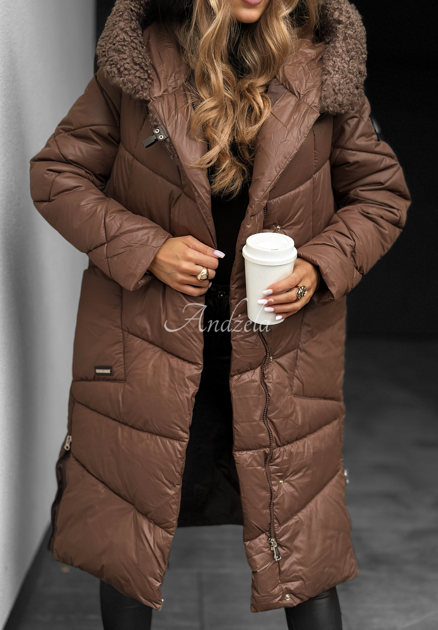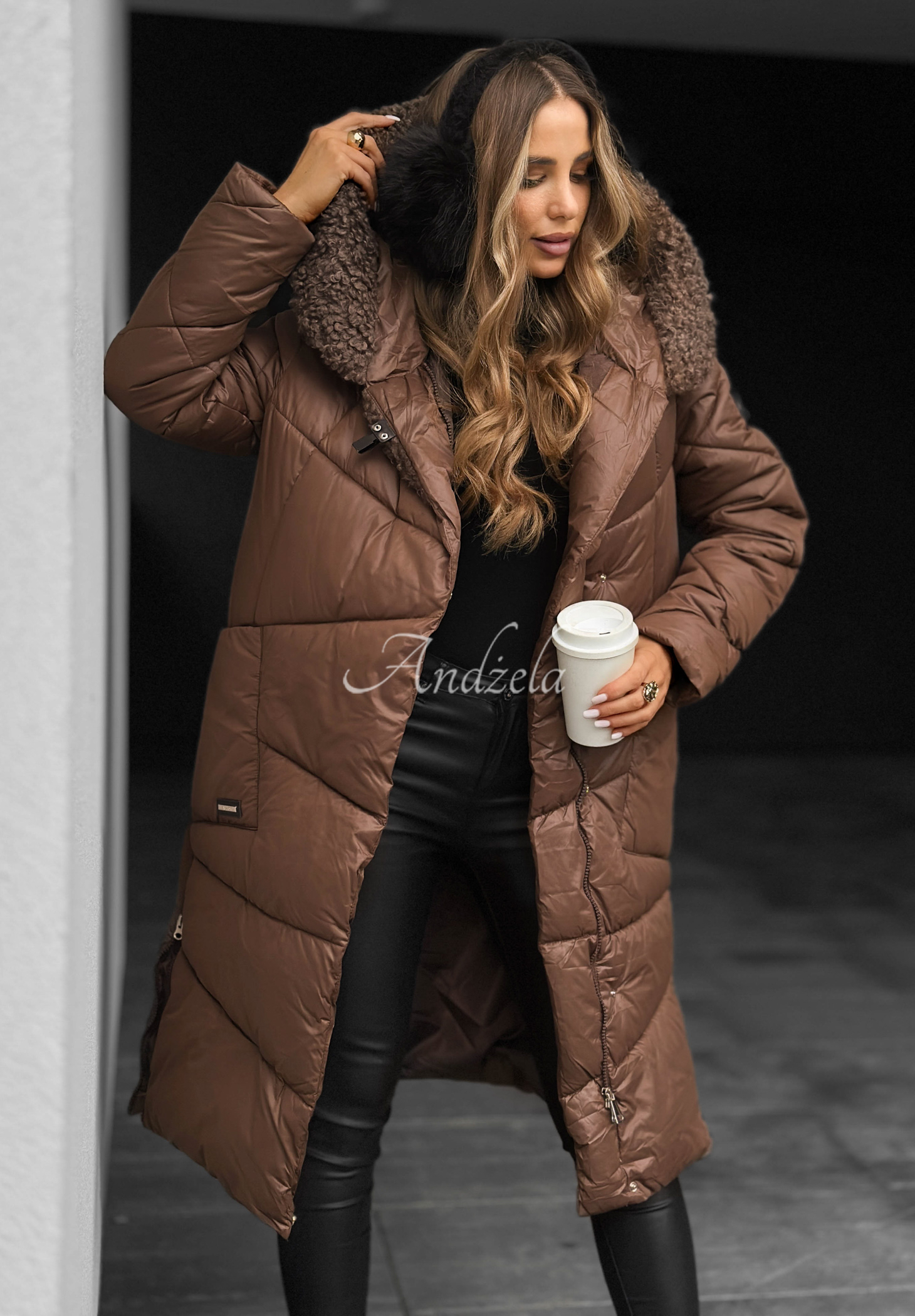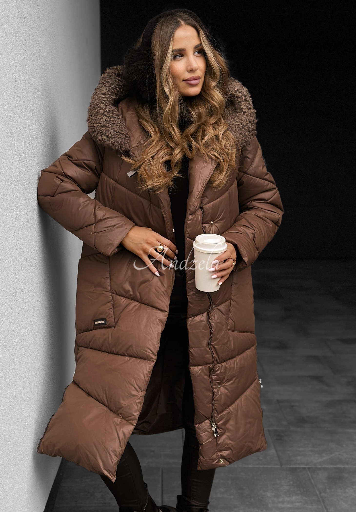 Prošívaná bunda s kožíškem October Leaves čokoládová