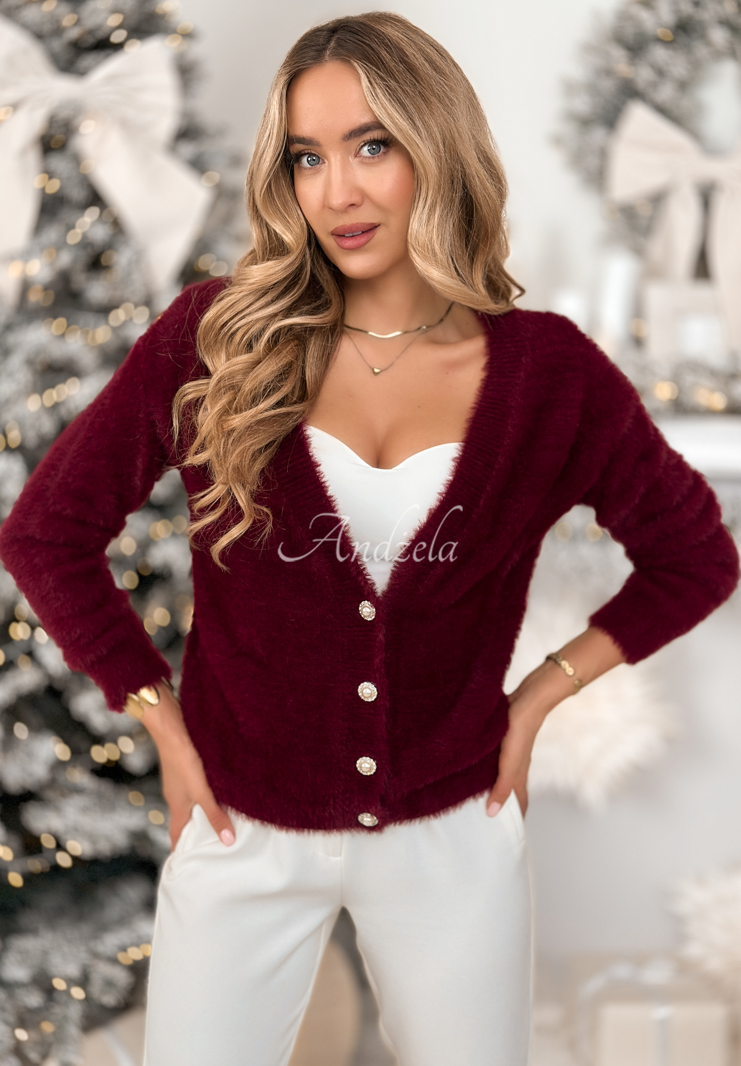 Krátký kardigan z alpaky Touch The Clouds vínový