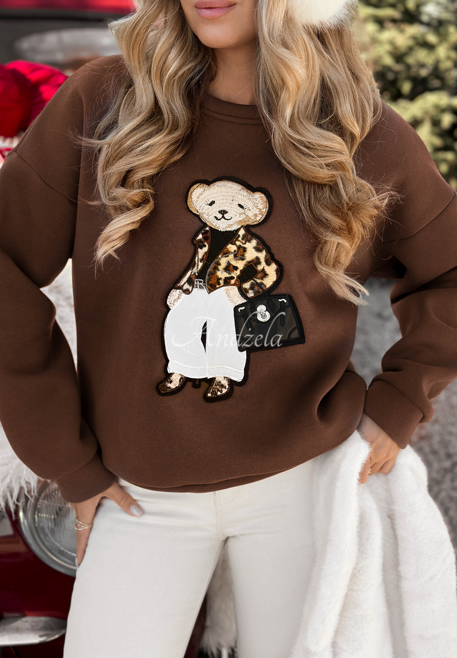 Oversize mikina s roztomilým potiskem medvídka na přední straně je skvělou volbou pro každodenní outfity v pohodlném stylu. Jedná se o zateplený model, vyrobený z bavlněného, neelastického materiálu, takže je ideální pro chladnější počasí. Má kulatý výstřih a manžety na spodním lemu i rukávech. Tato mikina se perfektně hodí k letošním trendům.