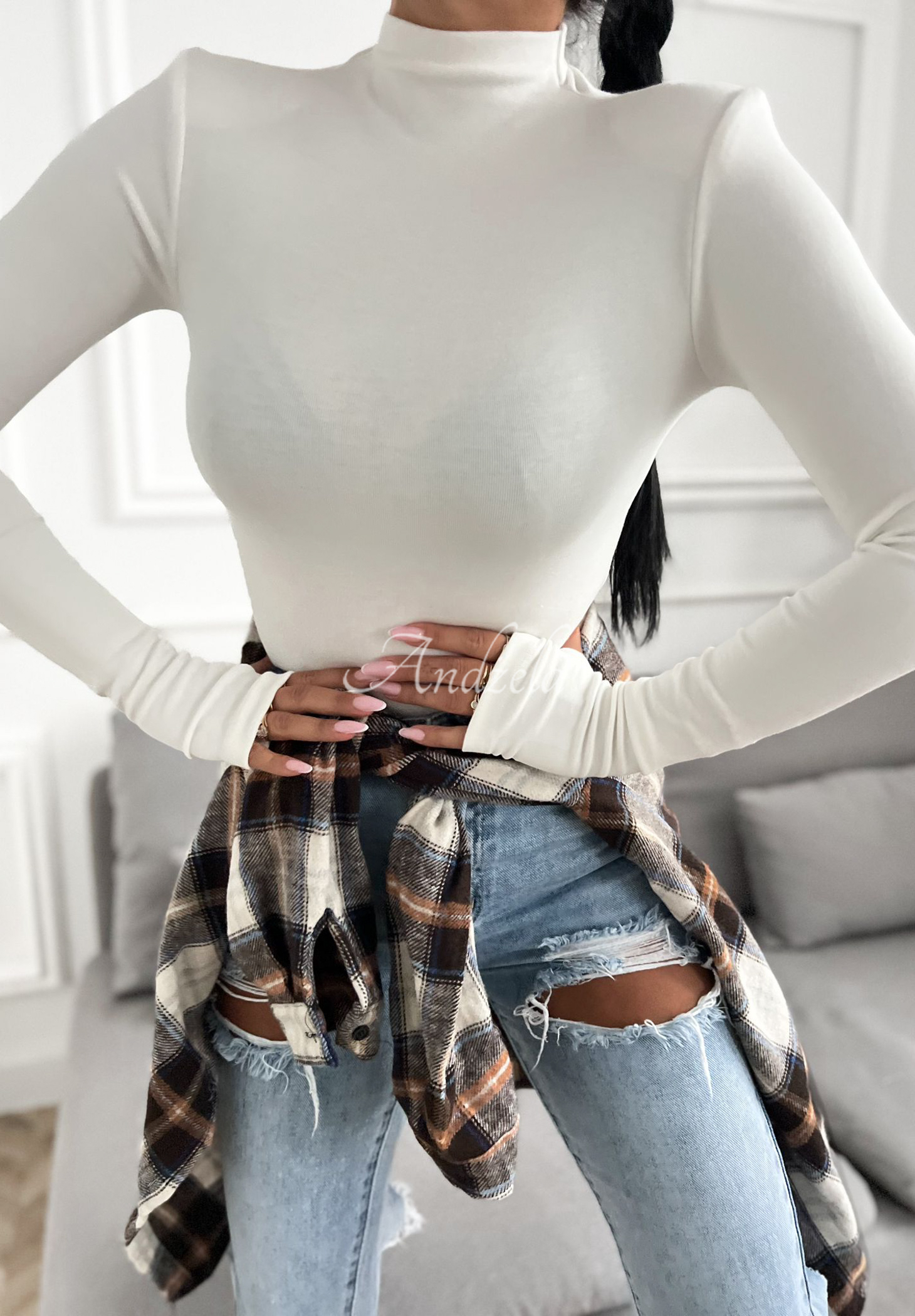 Halenka z vysoce kvalitního viskózového materiálu je základním kouskem, který by neměl chybět v žádném šatníku. Tento model má polorolák a ramenní vycpávky, které dodávají postavě tvar. Díky elastickému materiálu se dokonale přizpůsobí postavě a na koncích rukávů má praktické otvory na palce.