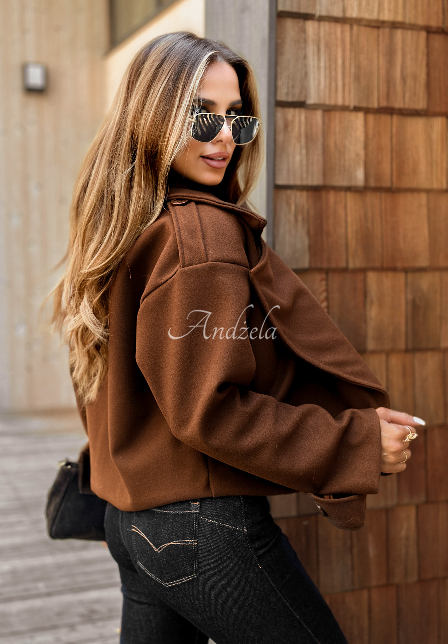 Modelka má výšku 165 cm, prezentuje velikost 38/M.