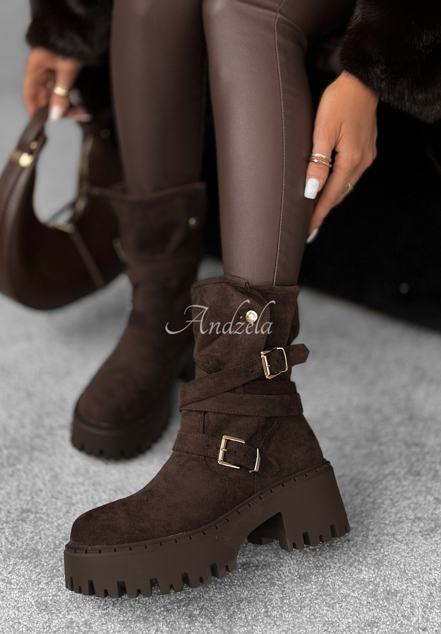 Semišové kotníkové boty s přezkami Coldest Months čokoládové