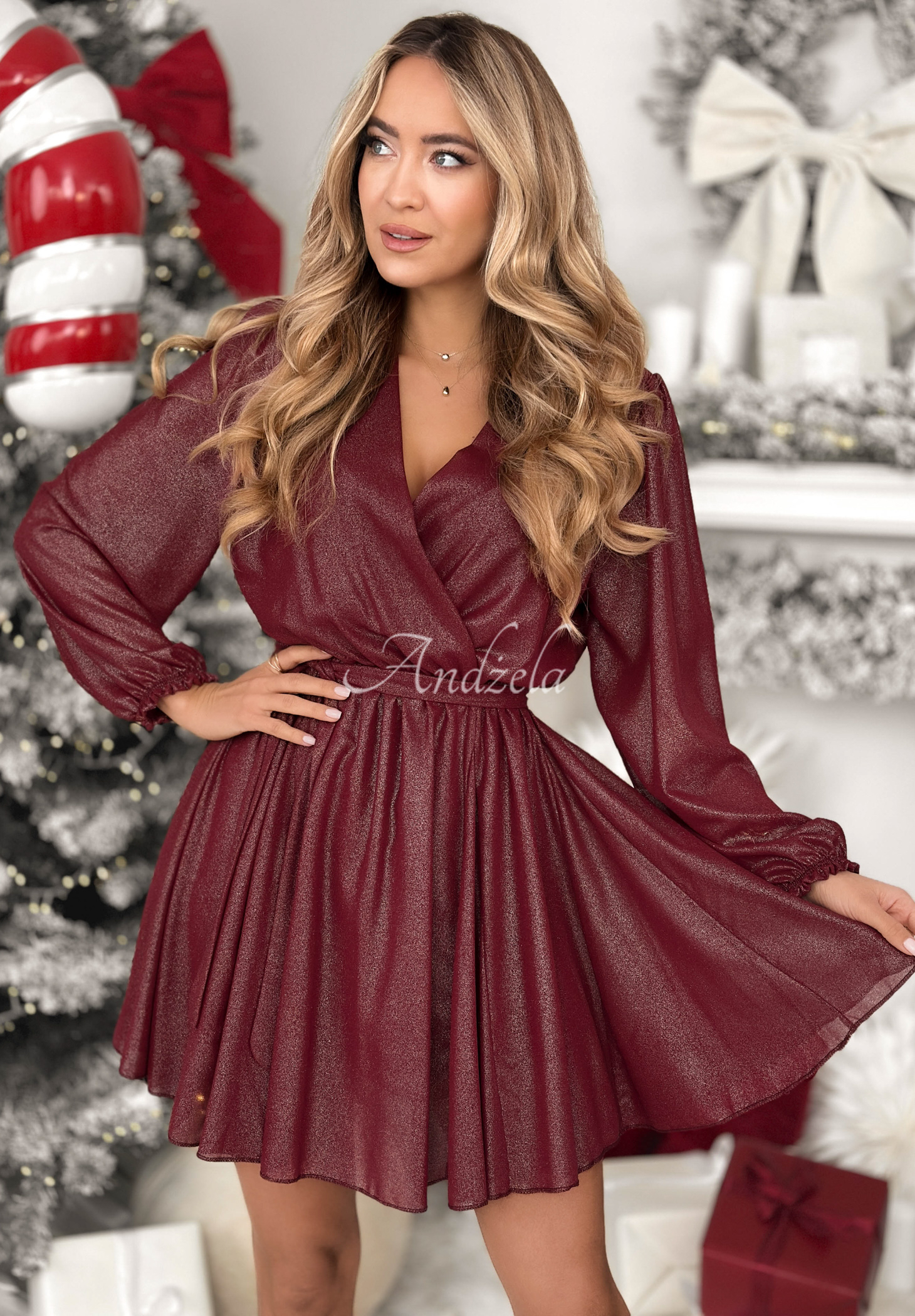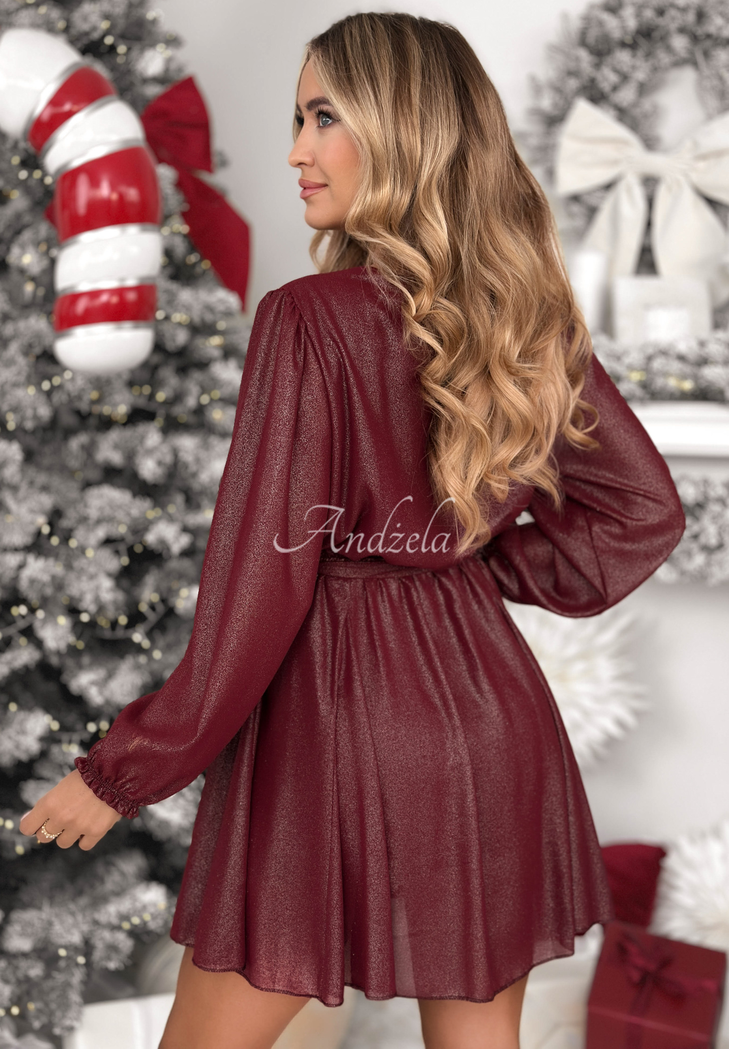 Lesklé mini šaty s páskem Never Texted Back vínová