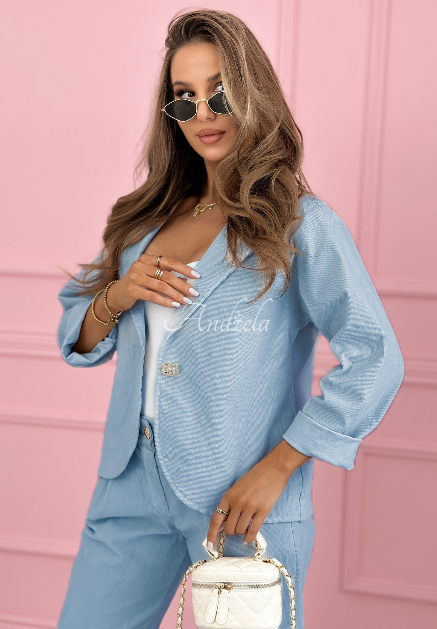 Manšestrové sako vyrobené z mírně elastického bavlněného materiálu. Model s límcem, zapínaný na zlatý knoflík. Skvěle se bude vyjímat v kombinaci s kalhotami z linie „Goodbye Lovely“.