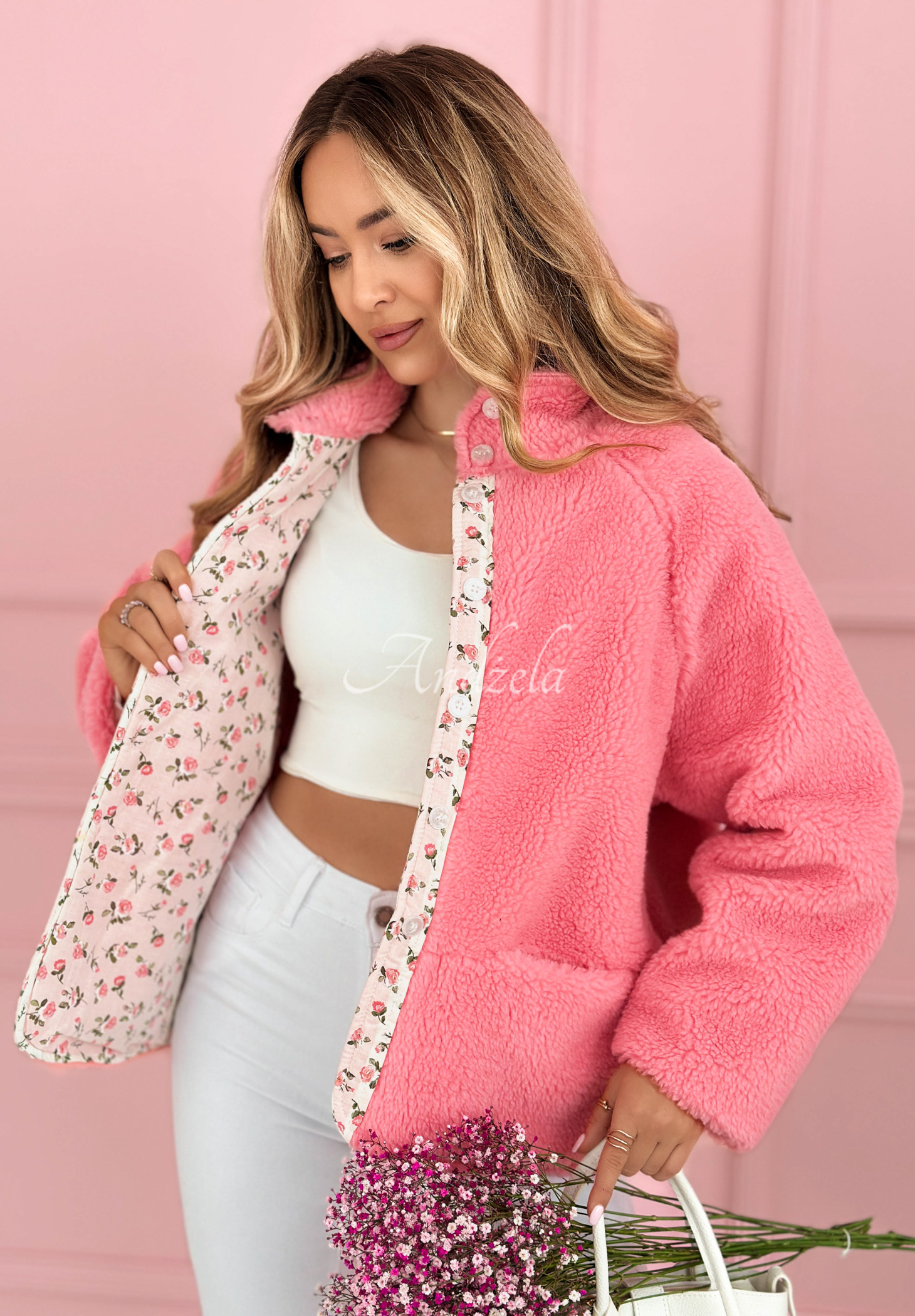 Modelka má výšku 165 cm, běžně nosí velikost S/M.