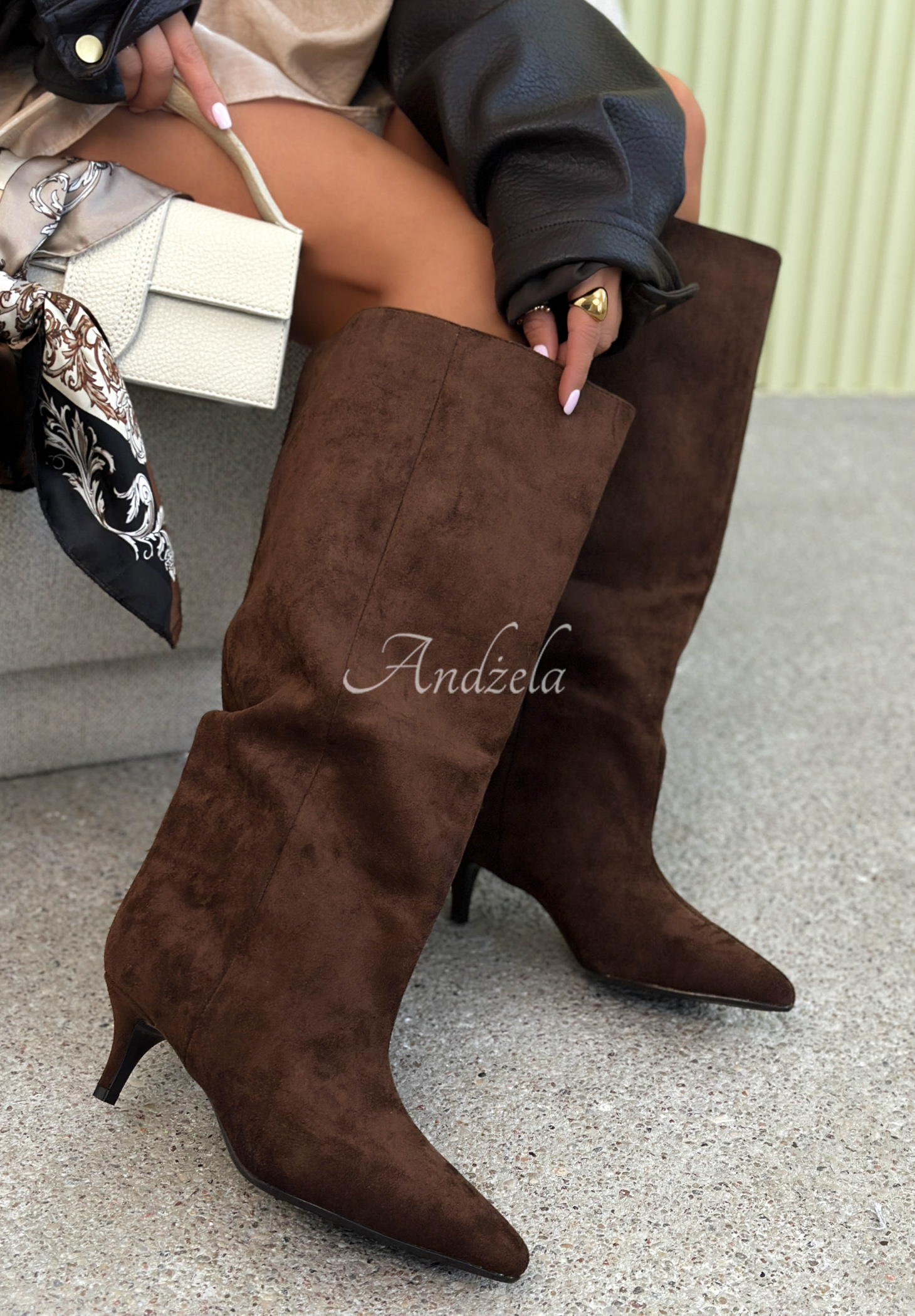 Semišové kozačky na jehlovém podpatku Better Without You čokoládové