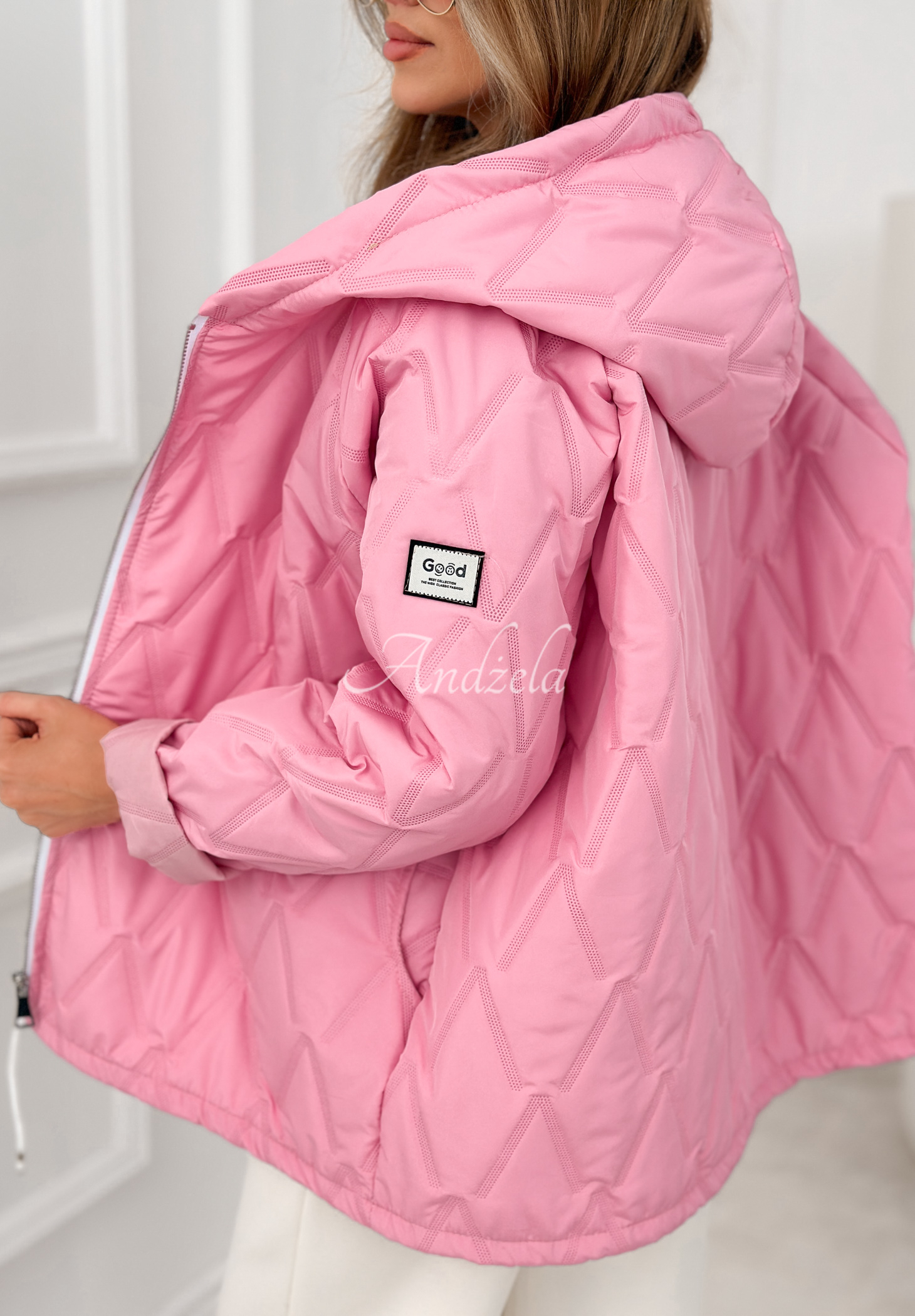 Krátká prošívaná bunda s kapucí Springtime Starts růžová