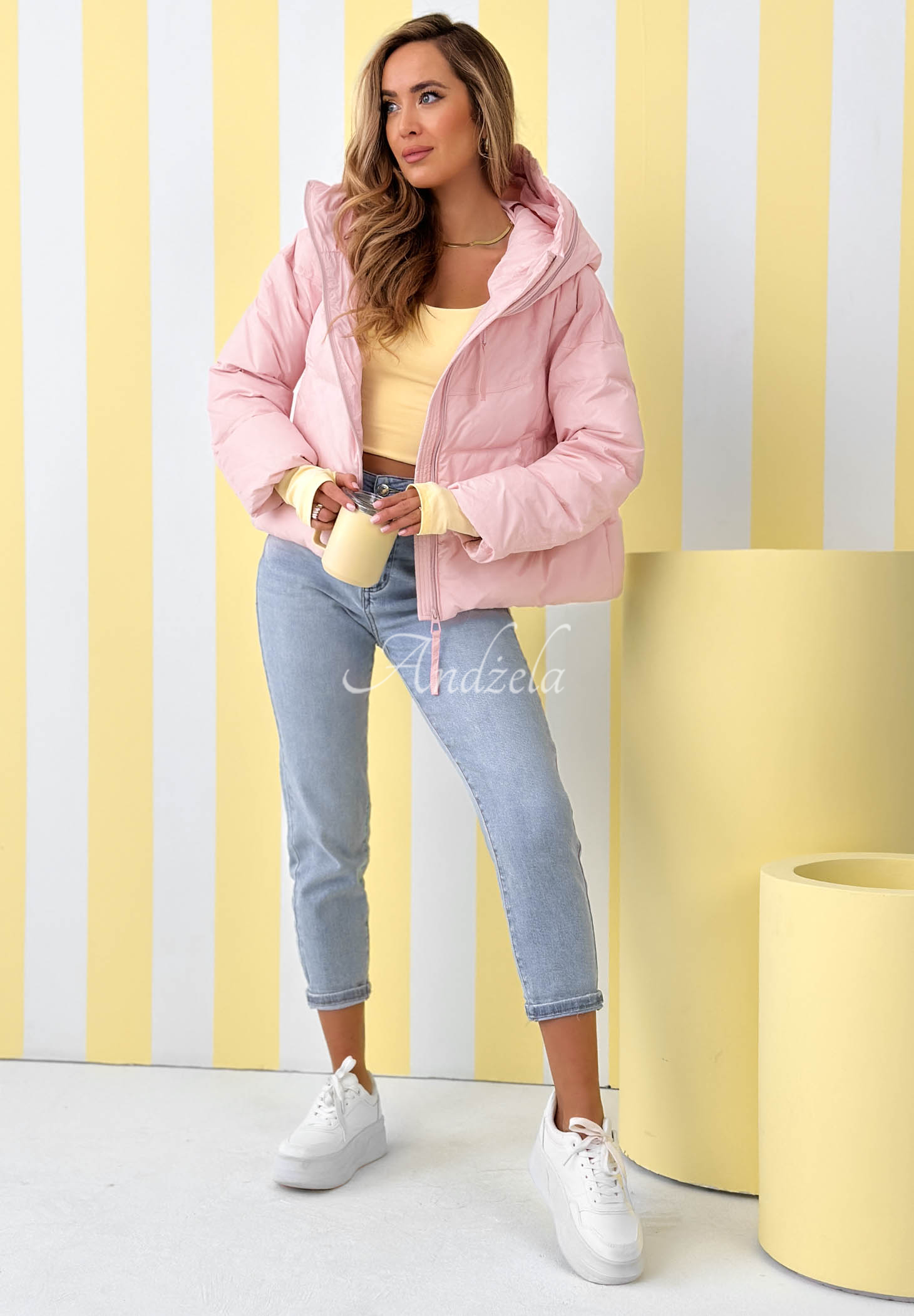Krátká péřová bunda s kapucí Must Believe pudrová růžová