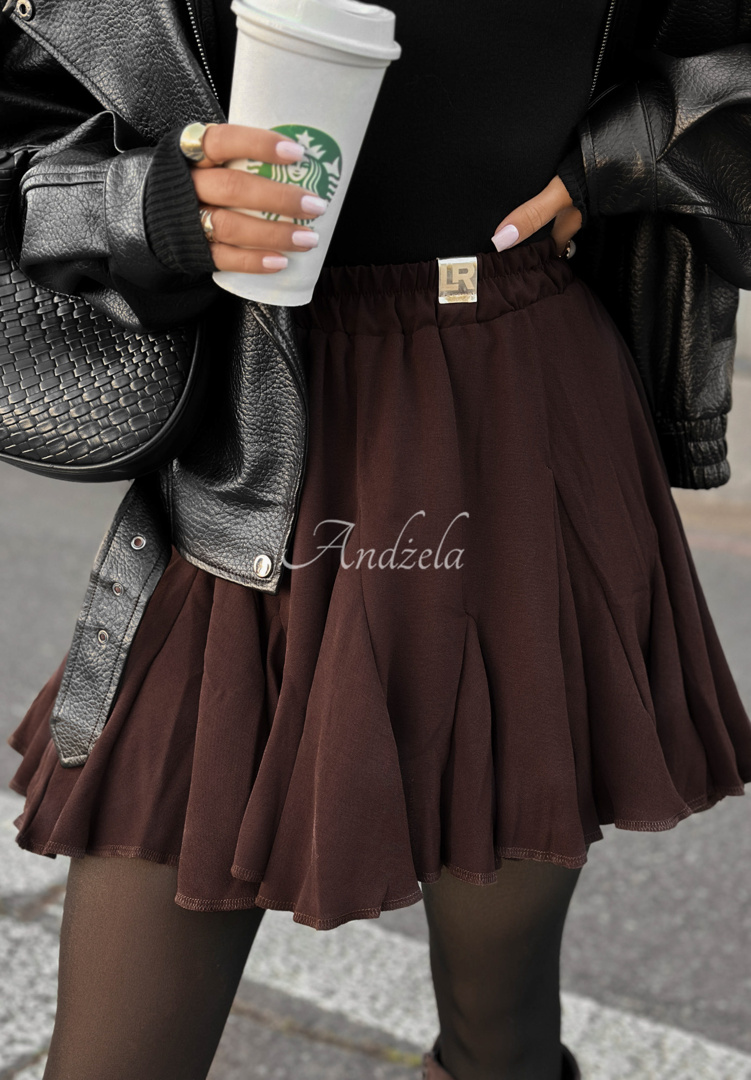 Lehká, vzdušná sukýnka v rozšířeném střihu z lehkého materiálu. Model v mini délce s elastickou gumou v pase. Vpředu je umístěna malá nášivka.