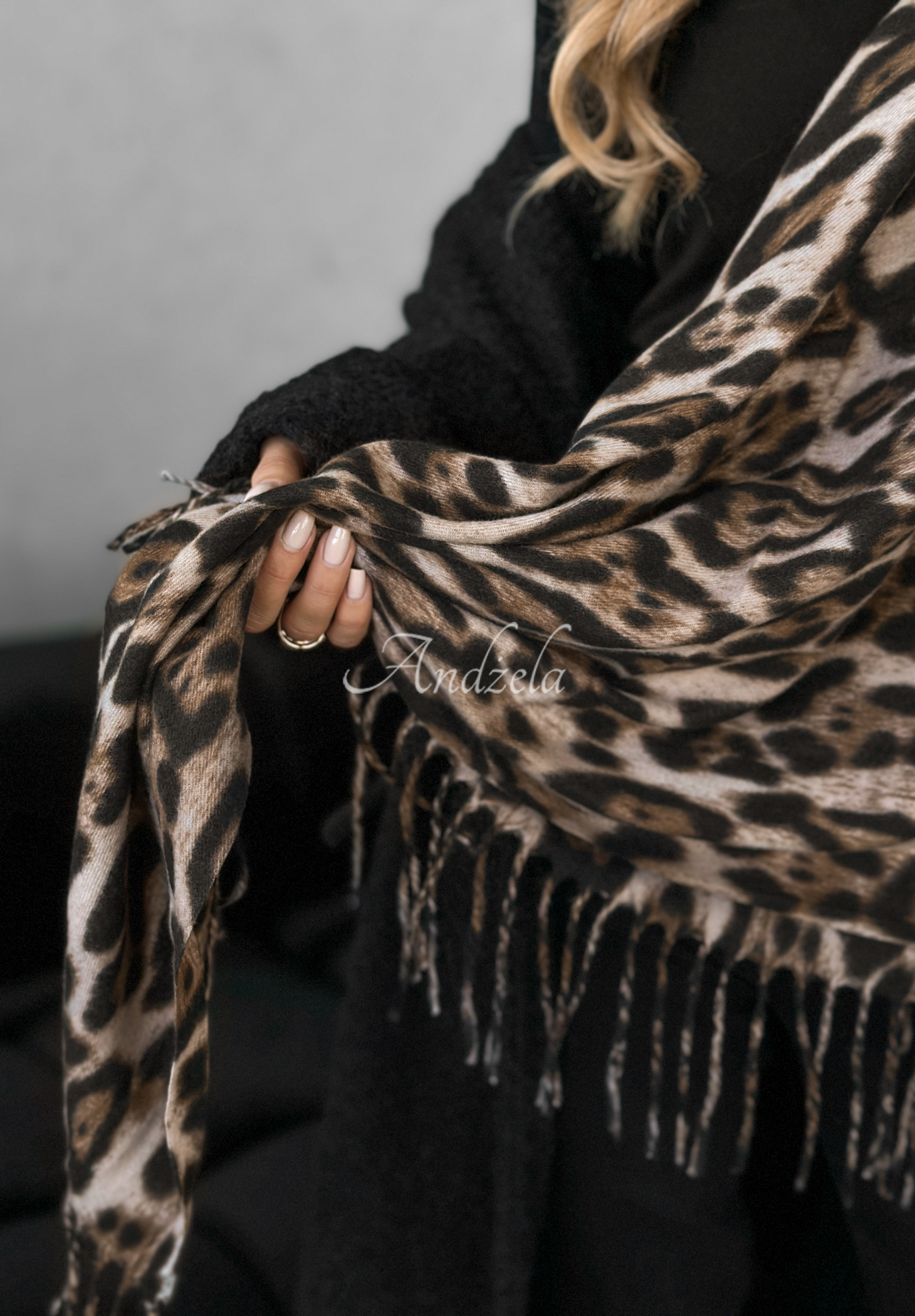 Šátek se vyznačuje módním leopardím vzorem a krátkými třásněmi. Je vyroben z vysoce kvalitního viskózového materiálu.* nepružný materiál* krátké třásně* leopardí vzor