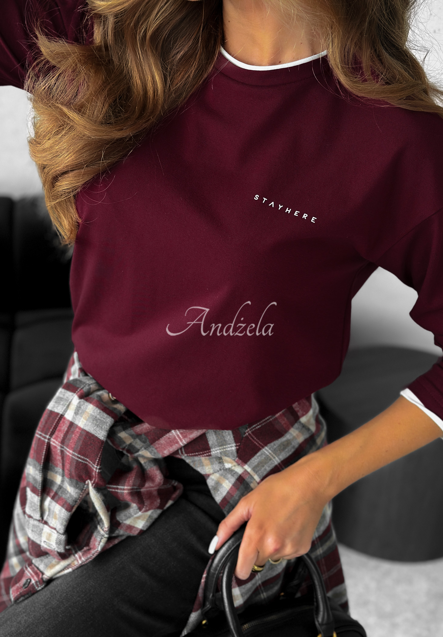 Bavlněná halenka s dlouhým rukávem Just A Dream vínová