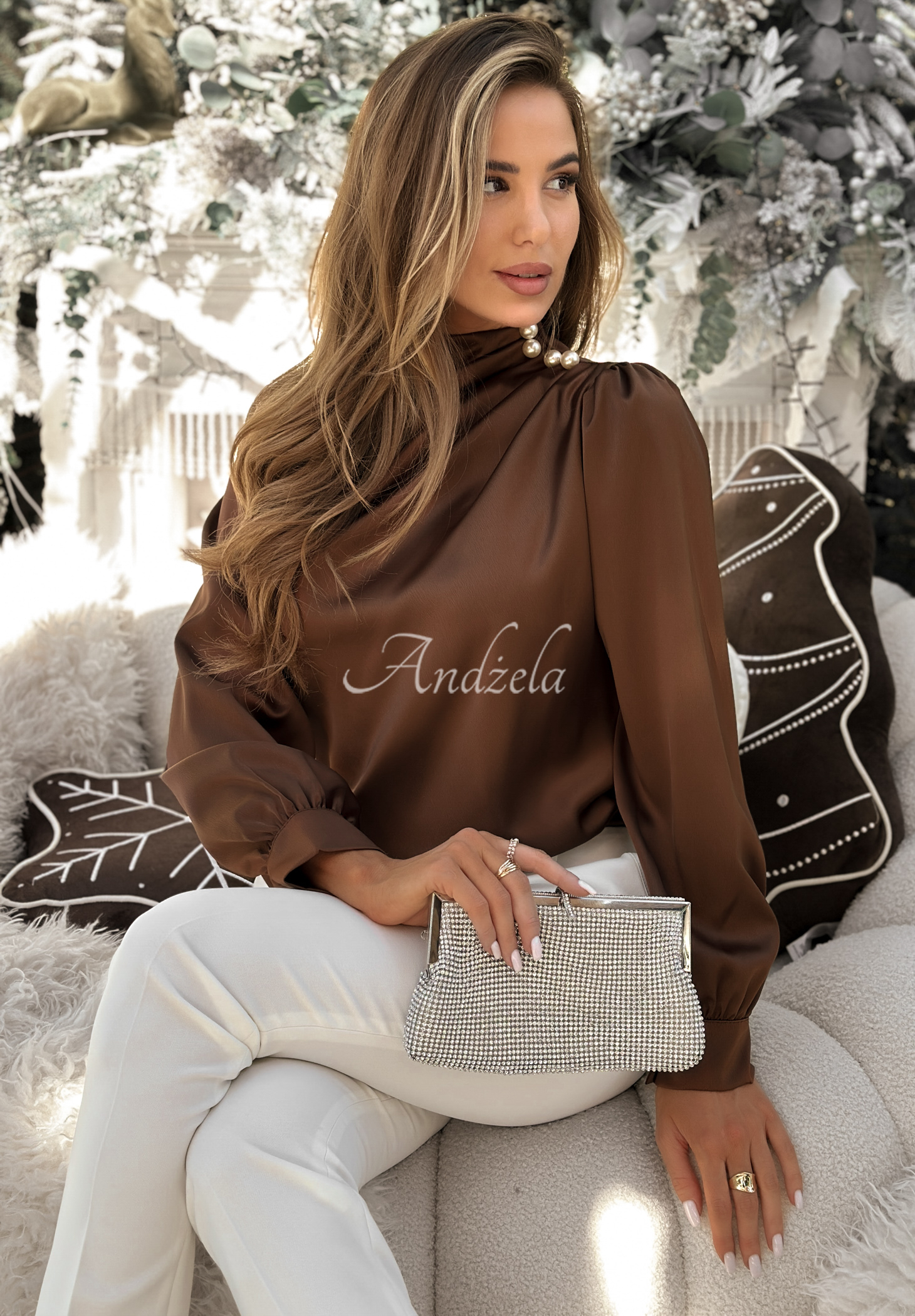 [title] => Czekoladowa satyna i delikatne perełki >> perfekcyjna bluzka na wyjątkowe okazje! 🤎✨