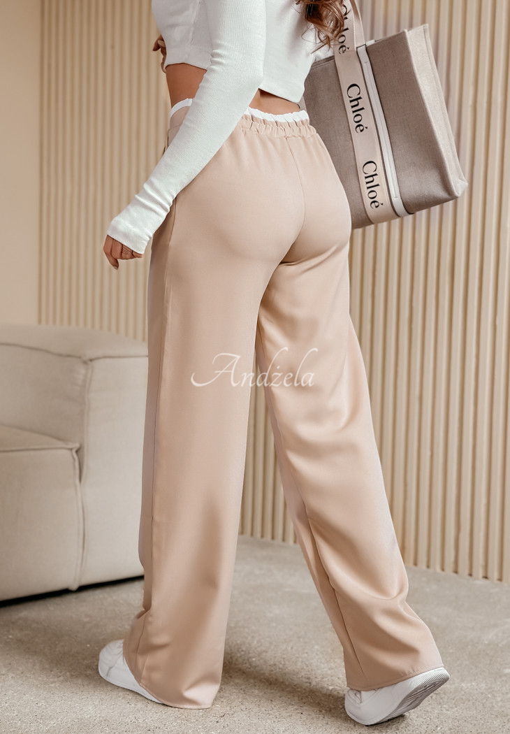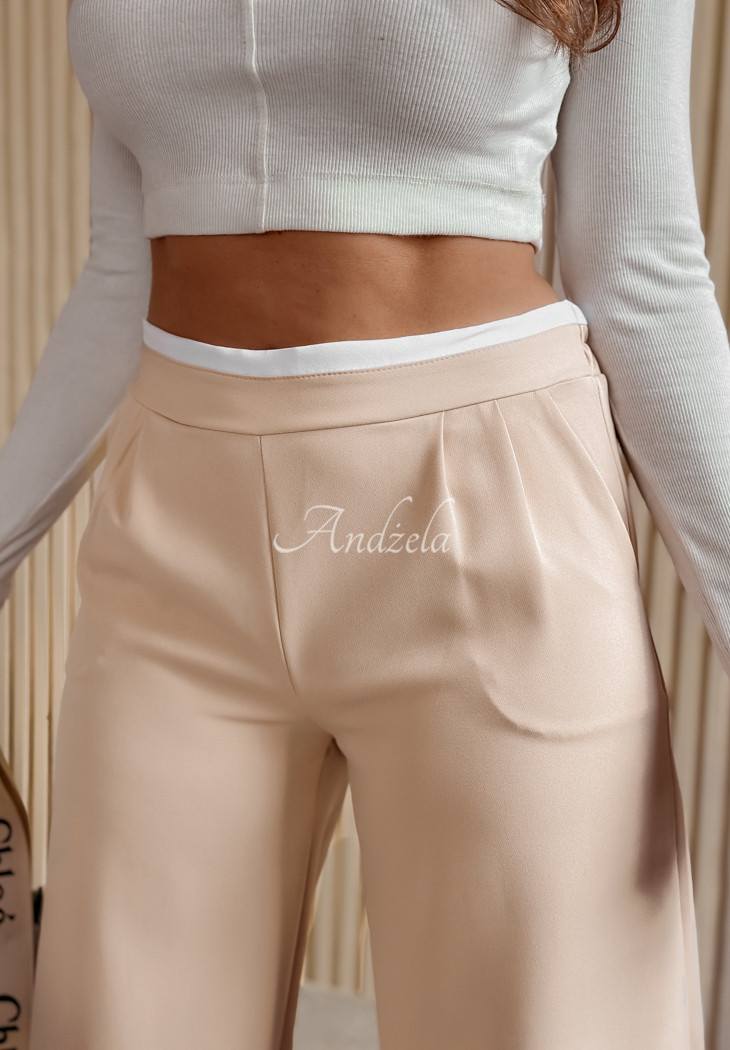 Látkové wide leg kalhoty jsou skvělou volbou pro každodenní i elegantní styling. Vyznačují se vzdušnými nohavicemi širokého střihu, které budou vypadat skvěle na různých typech postavy. Tento model má přední kapsy a elastický pas, díky kterému perfektně sedí na postavě.