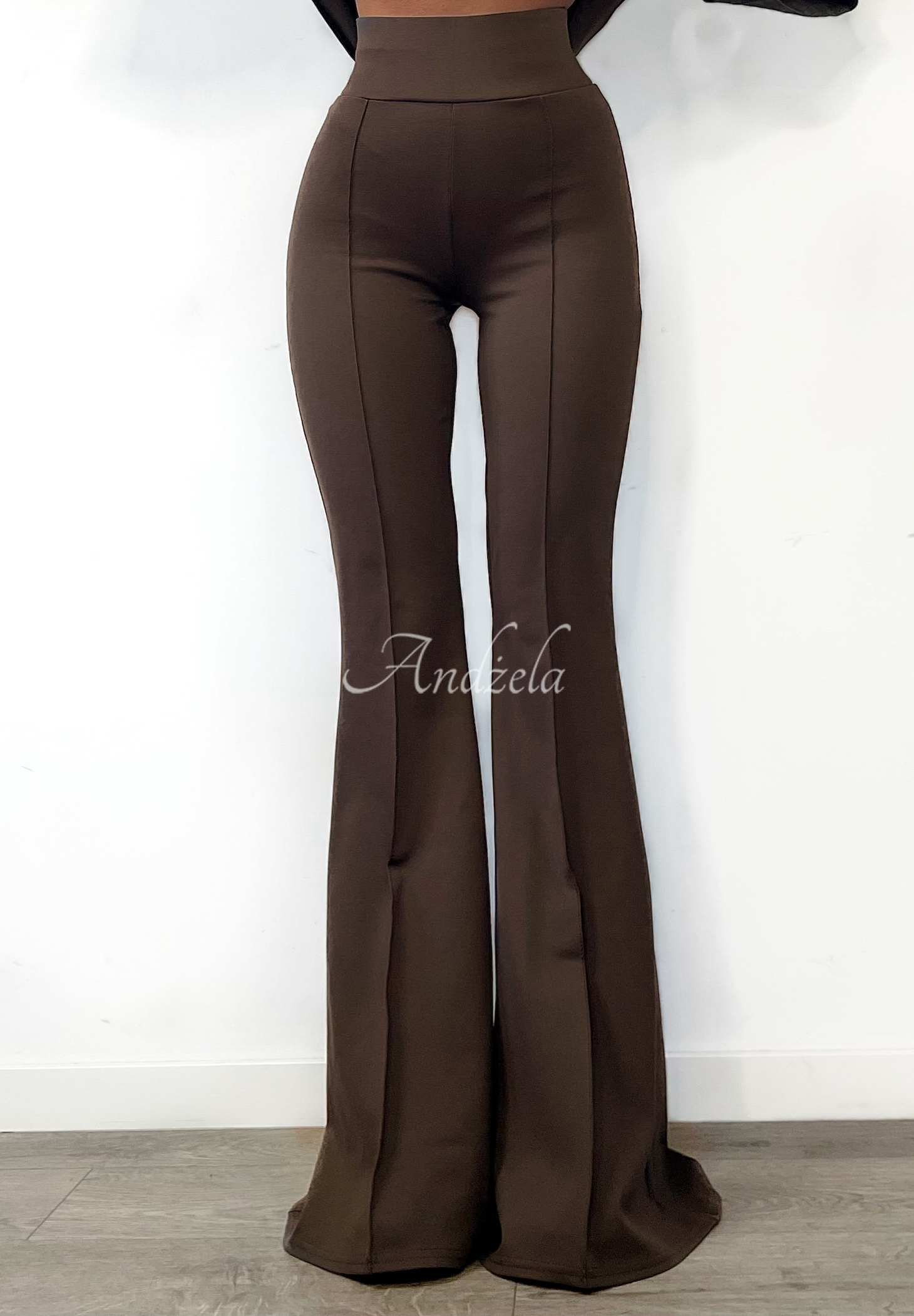Zvonové kalhoty v minimalistické verzi jsou návrhem, který bude vypadat mimořádně módně v každodenním i elegantním stylu. Vyznačují se rozšířenými nohavicemi s konvexními švy. Tento model je vyroben z elastického materiálu a má elastický pas, díky kterému perfektně sedí na postavě a podtrhuje jeho přednosti.