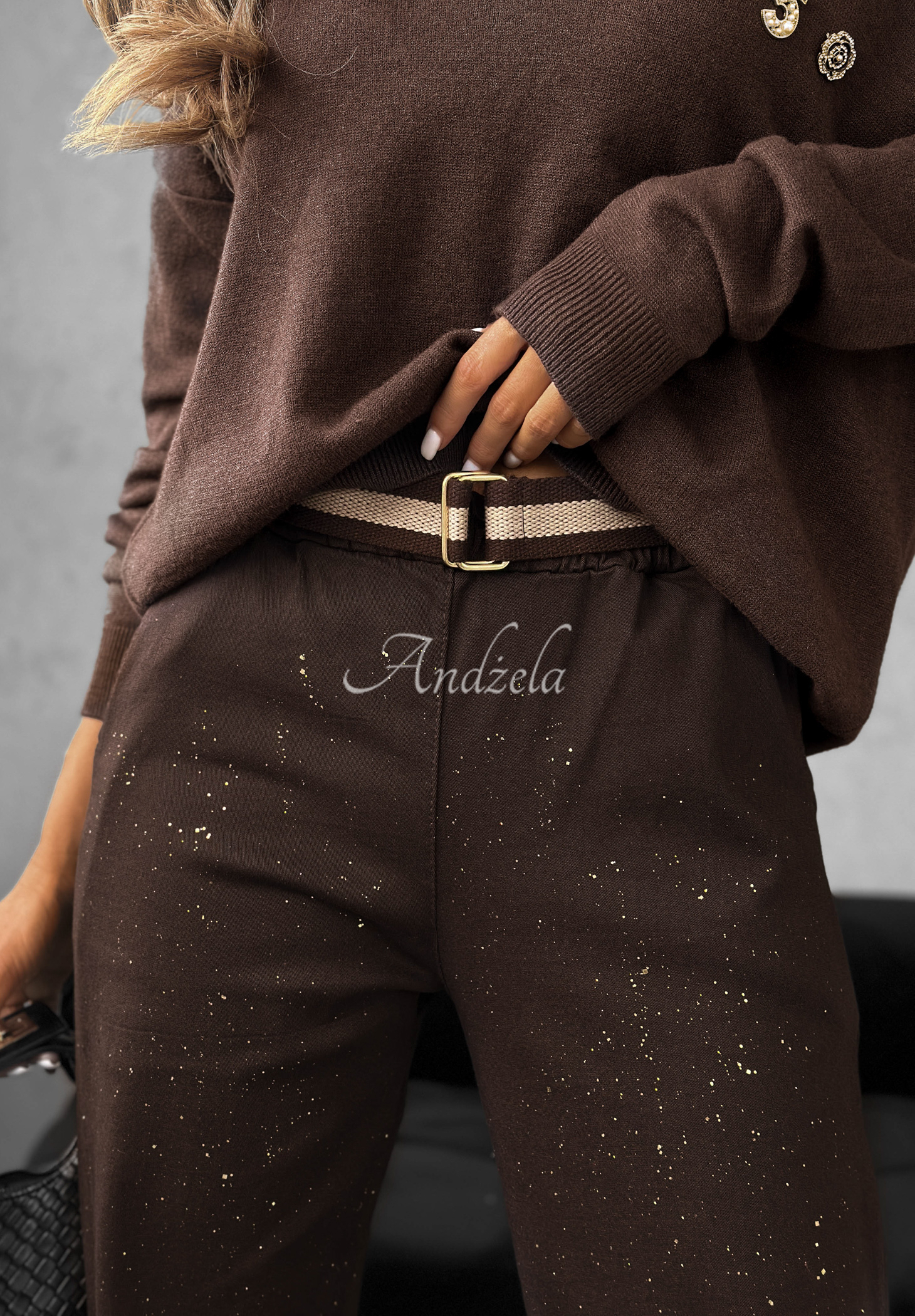Kalhoty s páskem Unlock Your Potential čokoládové