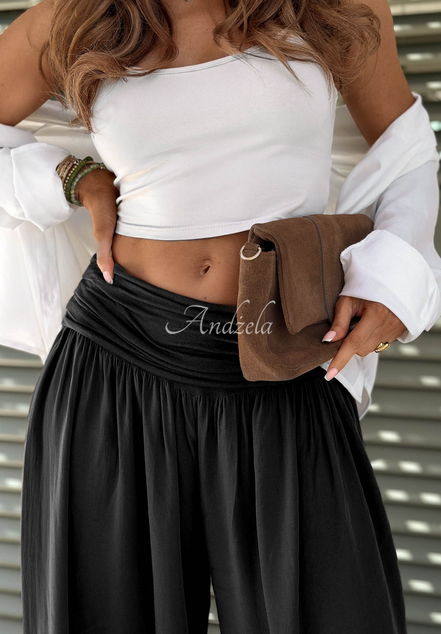 Viskózové harémové kalhoty se stahovacími lemy Coastal Sand černé