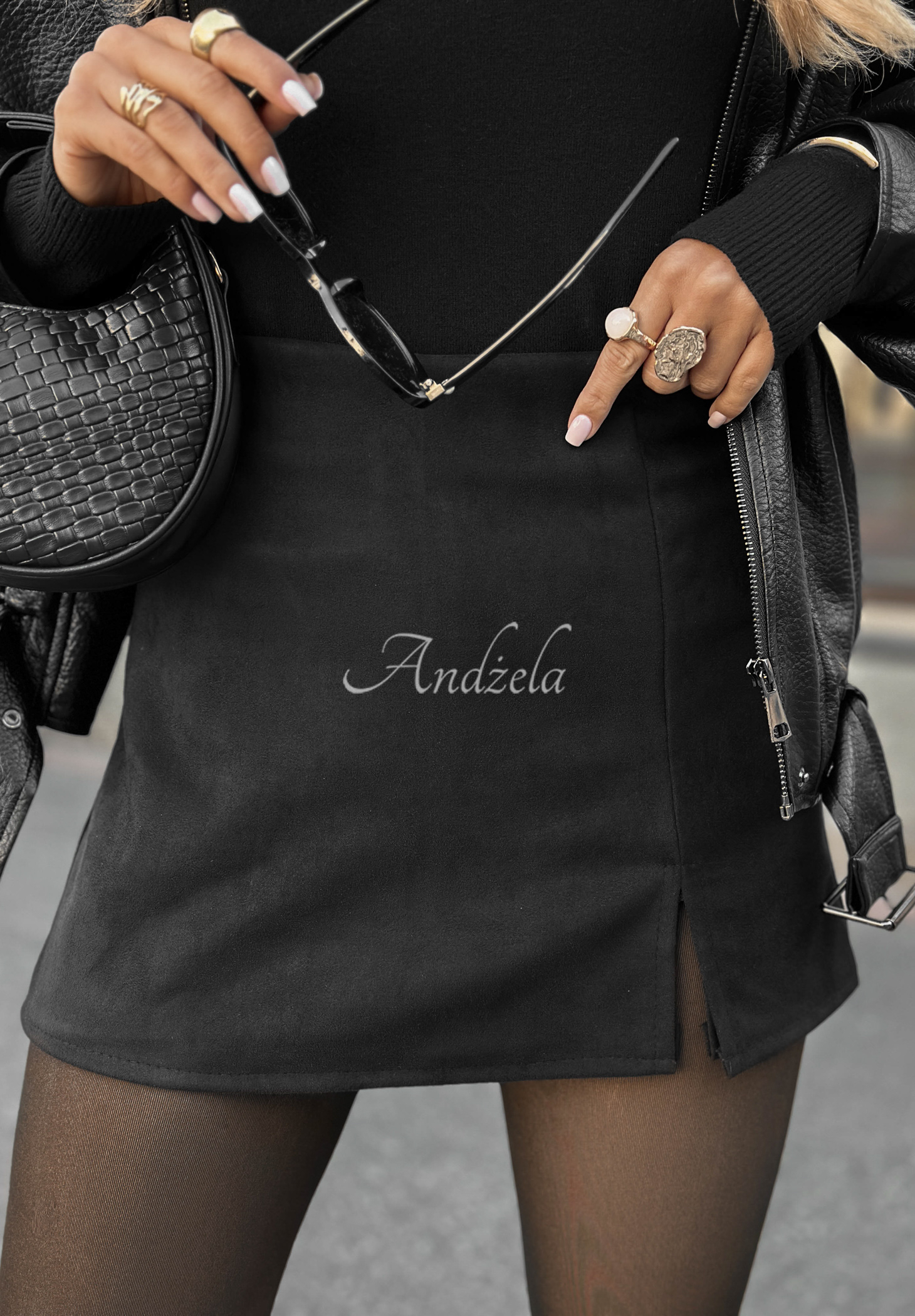 Sukňošortky z imitace semiše. Model s krátkým střihem a zapínáním na zip na boku. Výrazným prvkem je jemný rozparek dole.* nepružný materiál* imitace semiše* zapínání na zip z boku* jemný rozparek dole