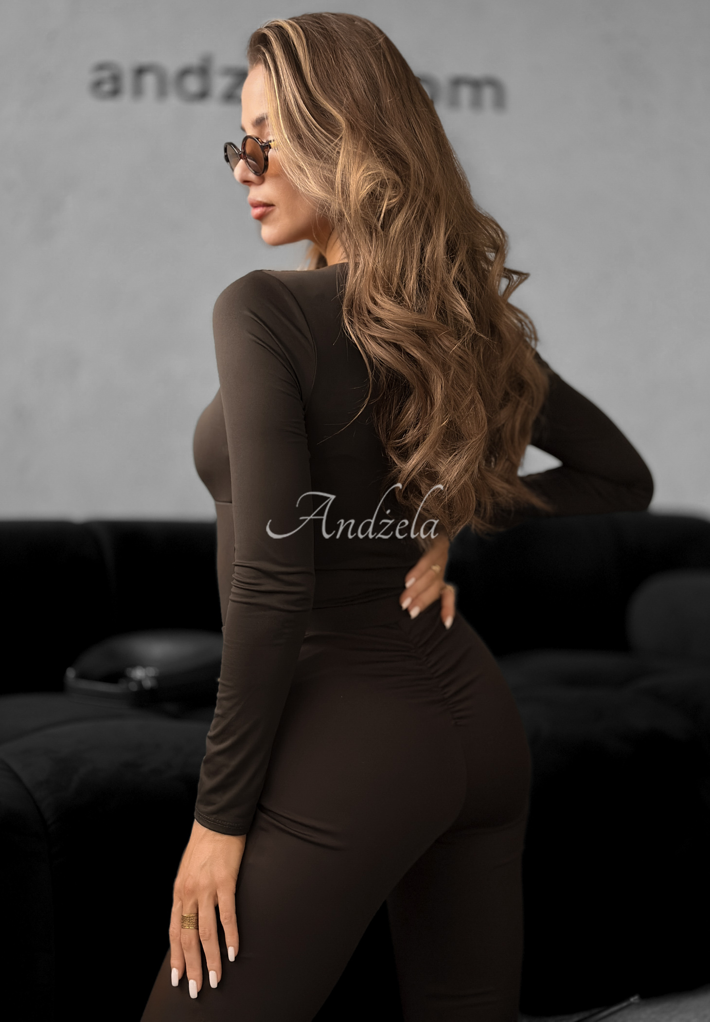 Viskózové legíny s řasením a s přesahem přes palec Lazy Afternoon čokoládové