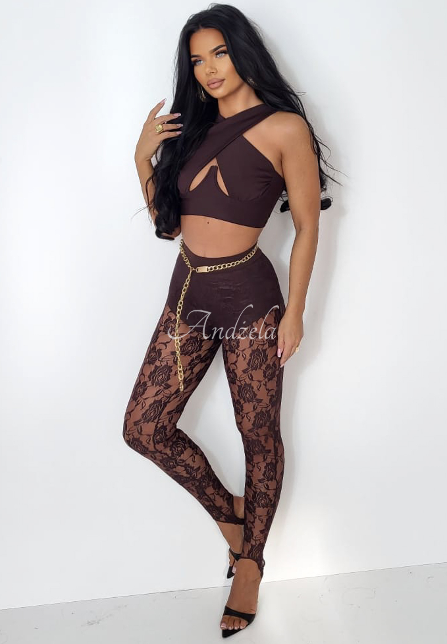 Efektní legíny z jemné krajky. Model se zesílenou patou a širokou gumou v pase, s podšívkou ve formě krátkých šortek. Celý je elastický, dokonale se přizpůsobí postavě a zvýrazní ji.