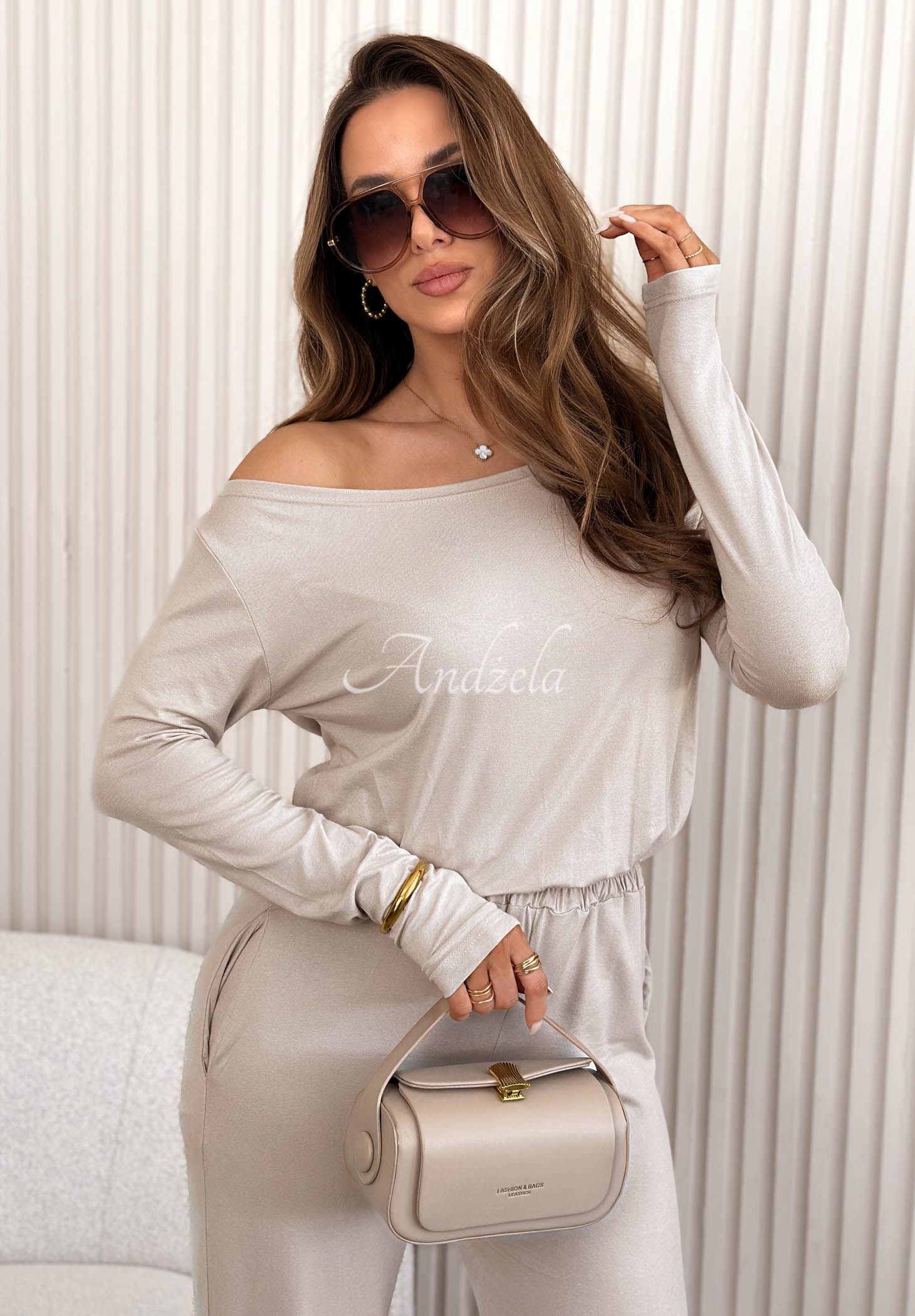 Dlouhý overal z příjemné viskózové tkaniny je skvělou volbou pro různé příležitosti. Model s asymetrickým výstřihem a dlouhými rukávy má také kapsy po stranách. Další předností jsou široké nohavice, které dodávají celku ležérní charakter a lehkost.