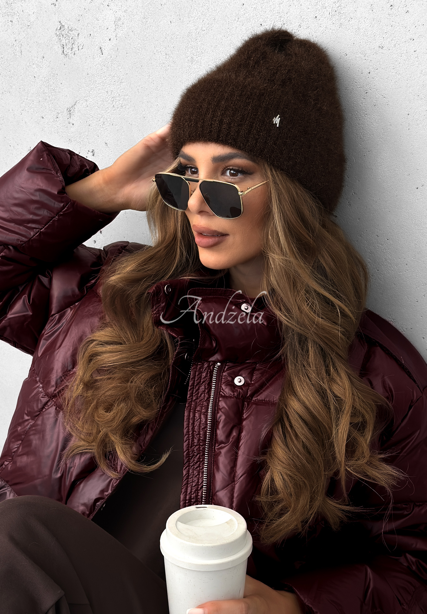 Čepice vyrobená z příjemného na dotek materiálu. Minimalistický model se subtilním stříbrným detailem vpředu a ohrnutím ve spodní části.