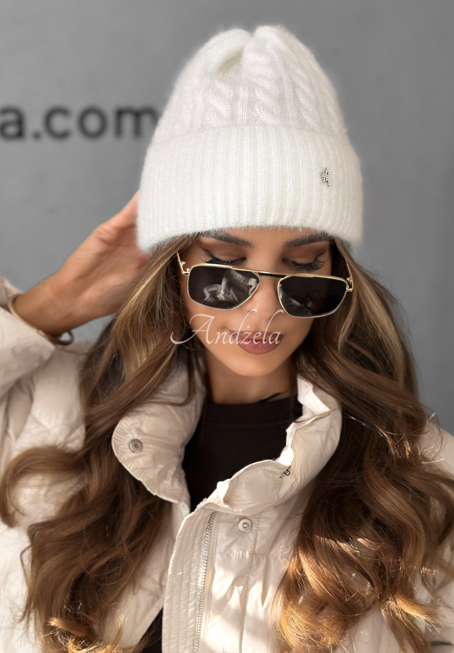Čepice vyrobená z příjemného na dotek materiálu. Minimalistický model se subtilním stříbrným detailem vpředu a ohrnutím ve spodní části.* elastický materiál* stříbrný detail vpředu* ohrnutá dole* nezateplená