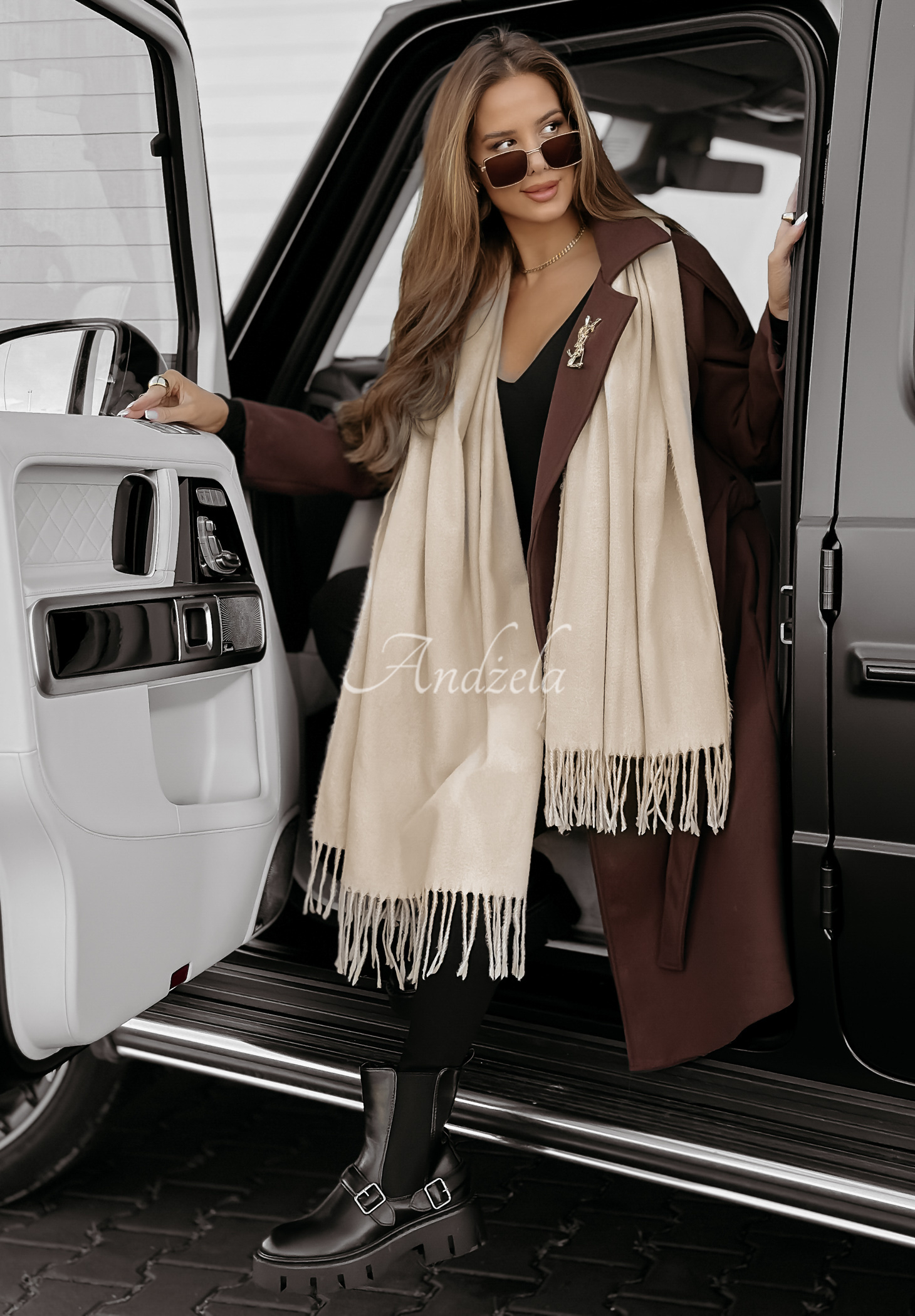 Šála je vyrobena z vysoce kvalitní tkaniny a je skvělou volbou pro mnoho oblečení do chladnějšího počasí. Další výhodou jsou tenké třásně na koncích materiálu.* nepružný materiál* třásně