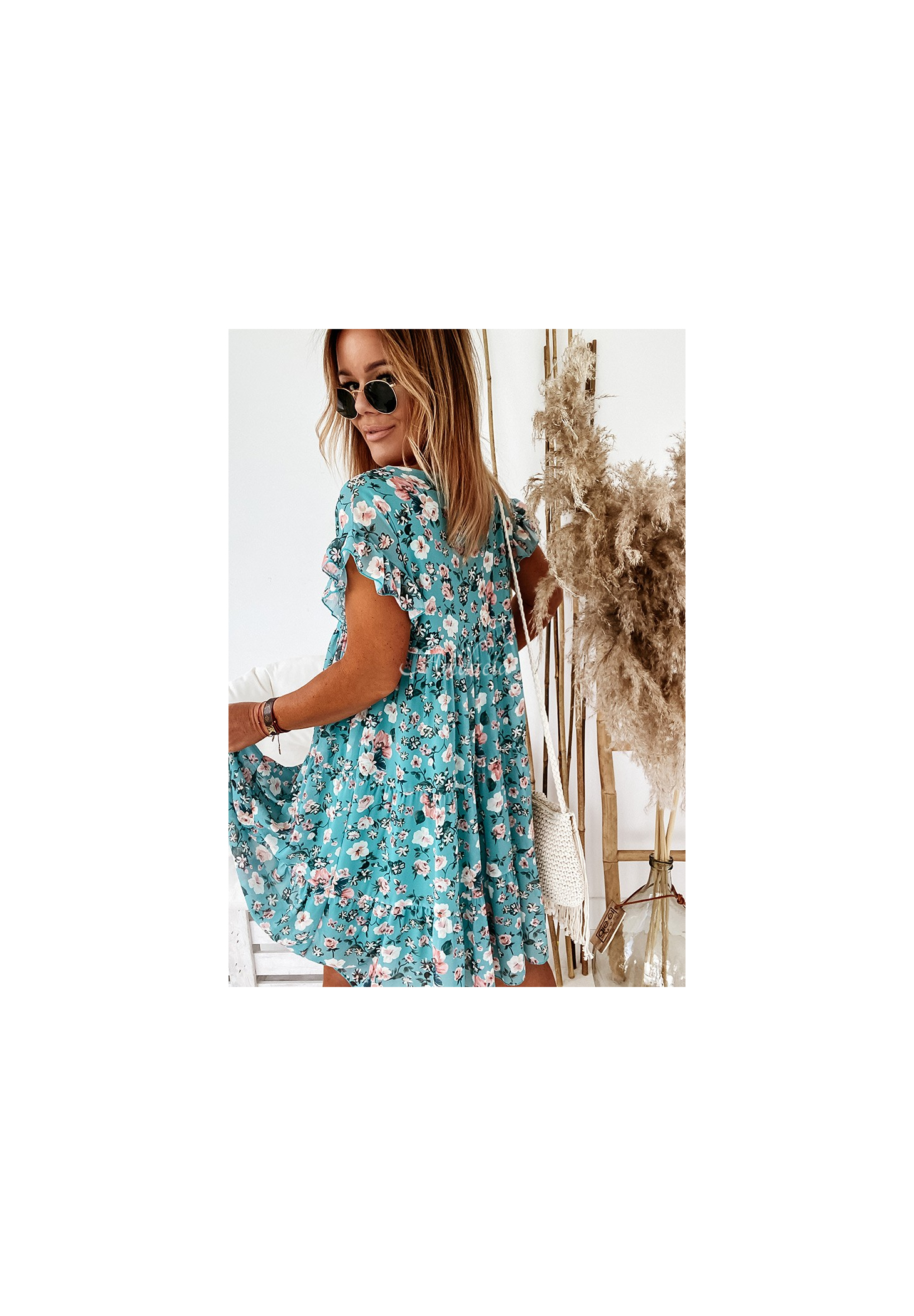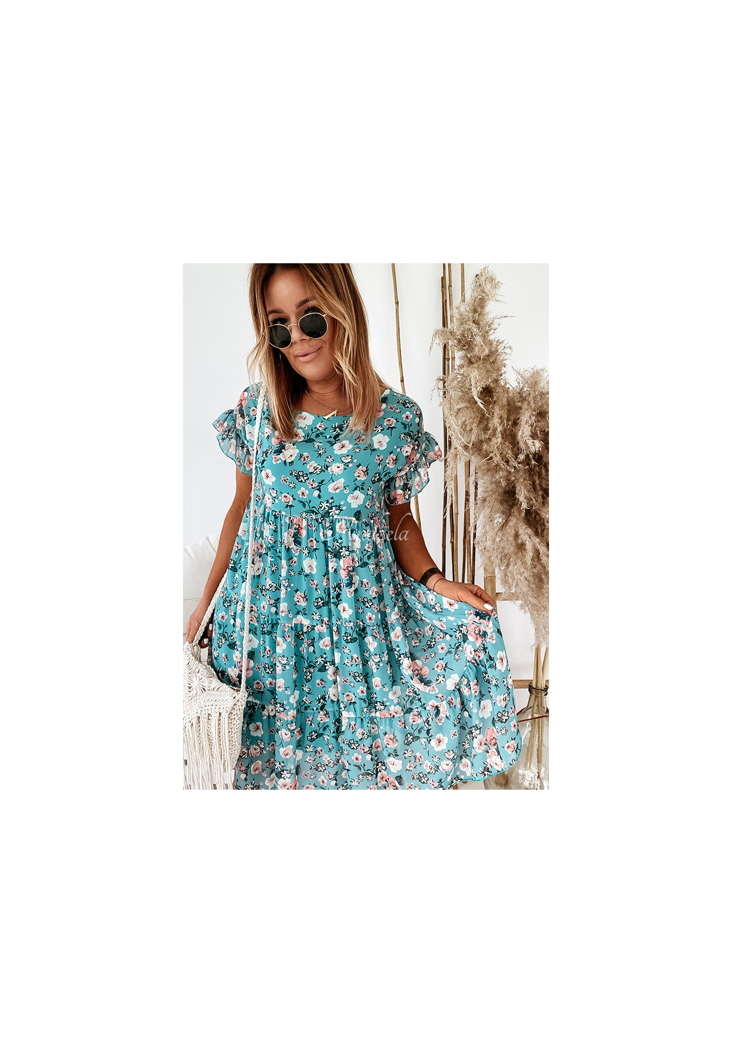 Květinové šaty ze vzdušné látky jsou skvělou volbou pro jarně-letní stylizaci. Model se vyznačuje rukávy s jemným volánkem a vodorovným prošíváním. Mírně rozšířená spodní část dodává celku dívčí vzhled.  Budou vypadat skvěle s kozačkami i sandály. K dispozici v několika barevných provedeních.