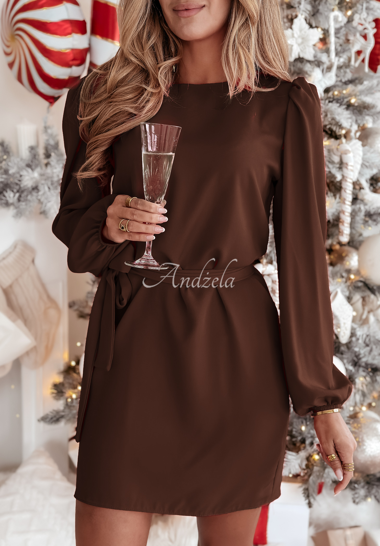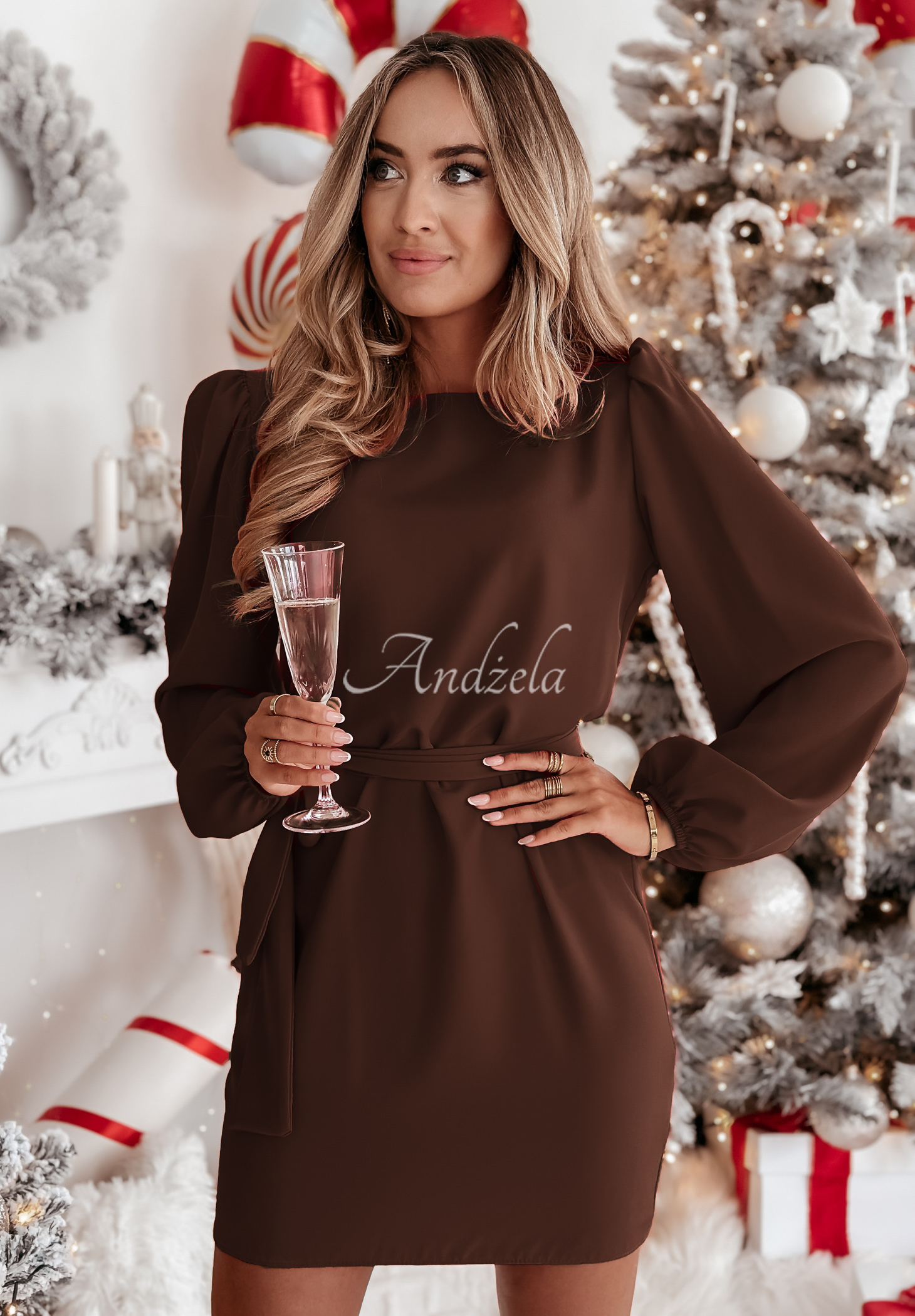 Trapézové šaty s látkovým páskem jsou skvělou volbou pro různé příležitosti. Model má dlouhé nabírané rukávy zakončené stahovací gumou, které dodávají šatům dívčí nádech. Na zádech je zlaté zapínání na knoflíky.* nepružný materiál* bez podšívky* dlouhé nabírané rukávy se stahovací gumou* součástí je látkový pásek* zapínání na knoflíky v zadní části* trapézový střih