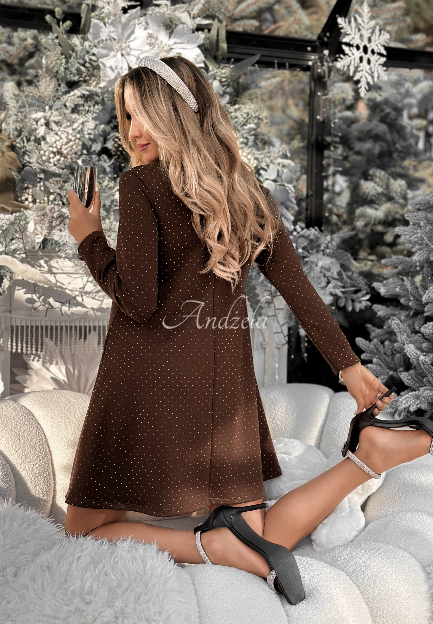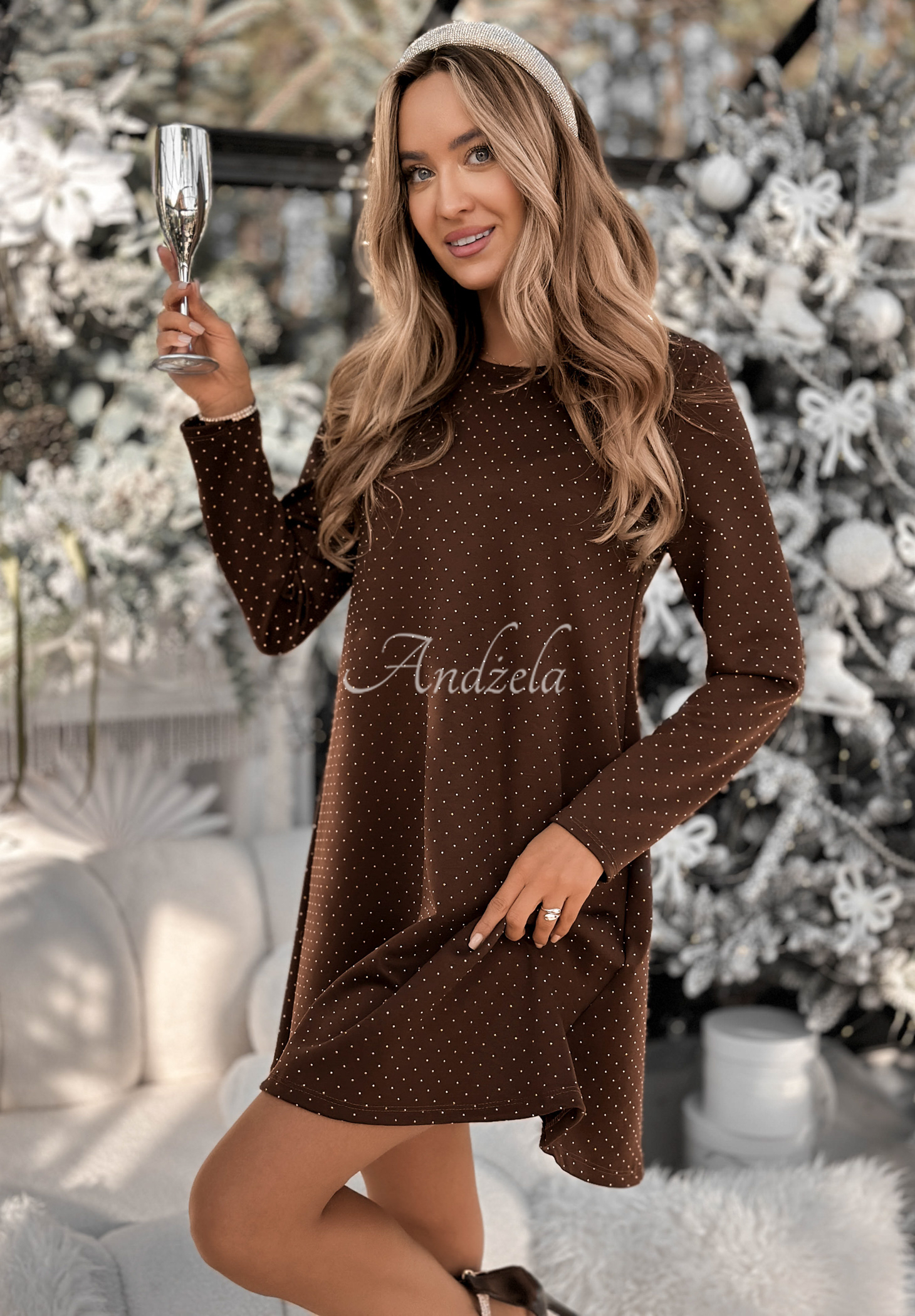 Výjimečné šaty s třpytivými kamínky, vyrobené z elastického materiálu s příměsí viskózy. Model v áčkovém střihu se zakulaceným výstřihem.* elastický materiál* po celé ploše nalepené kamínky* zakulacený výstřih* délka mini* áčkový střih