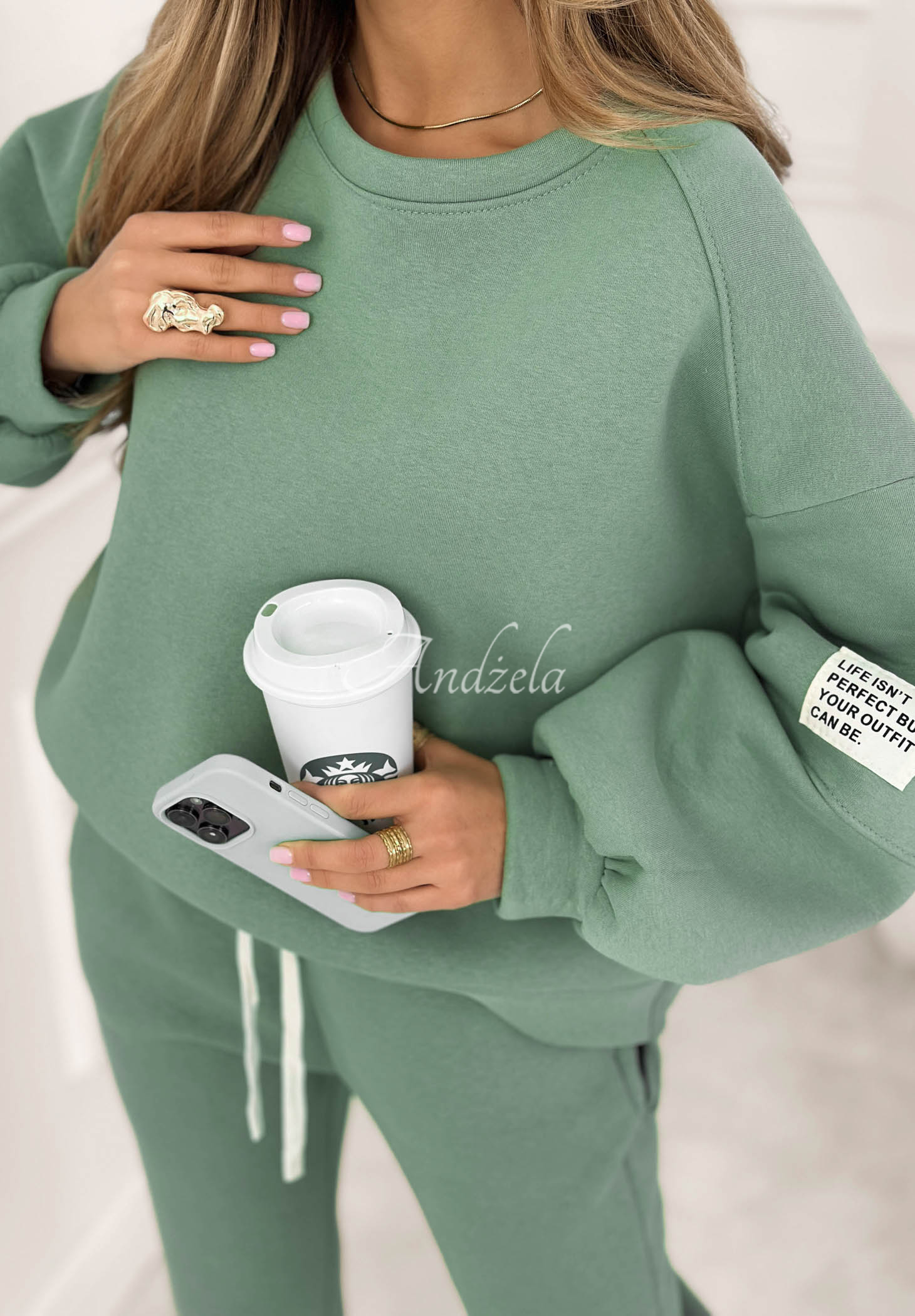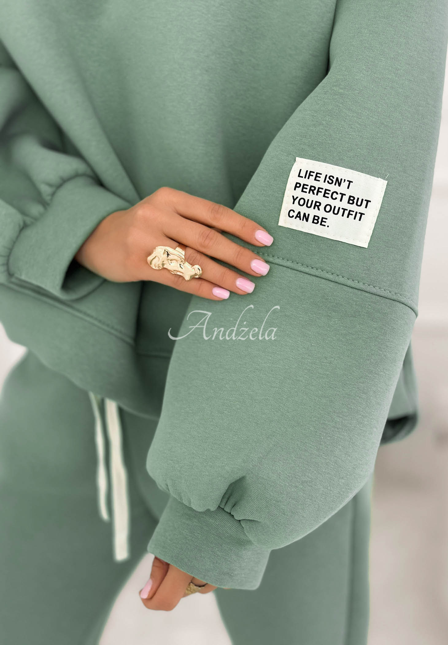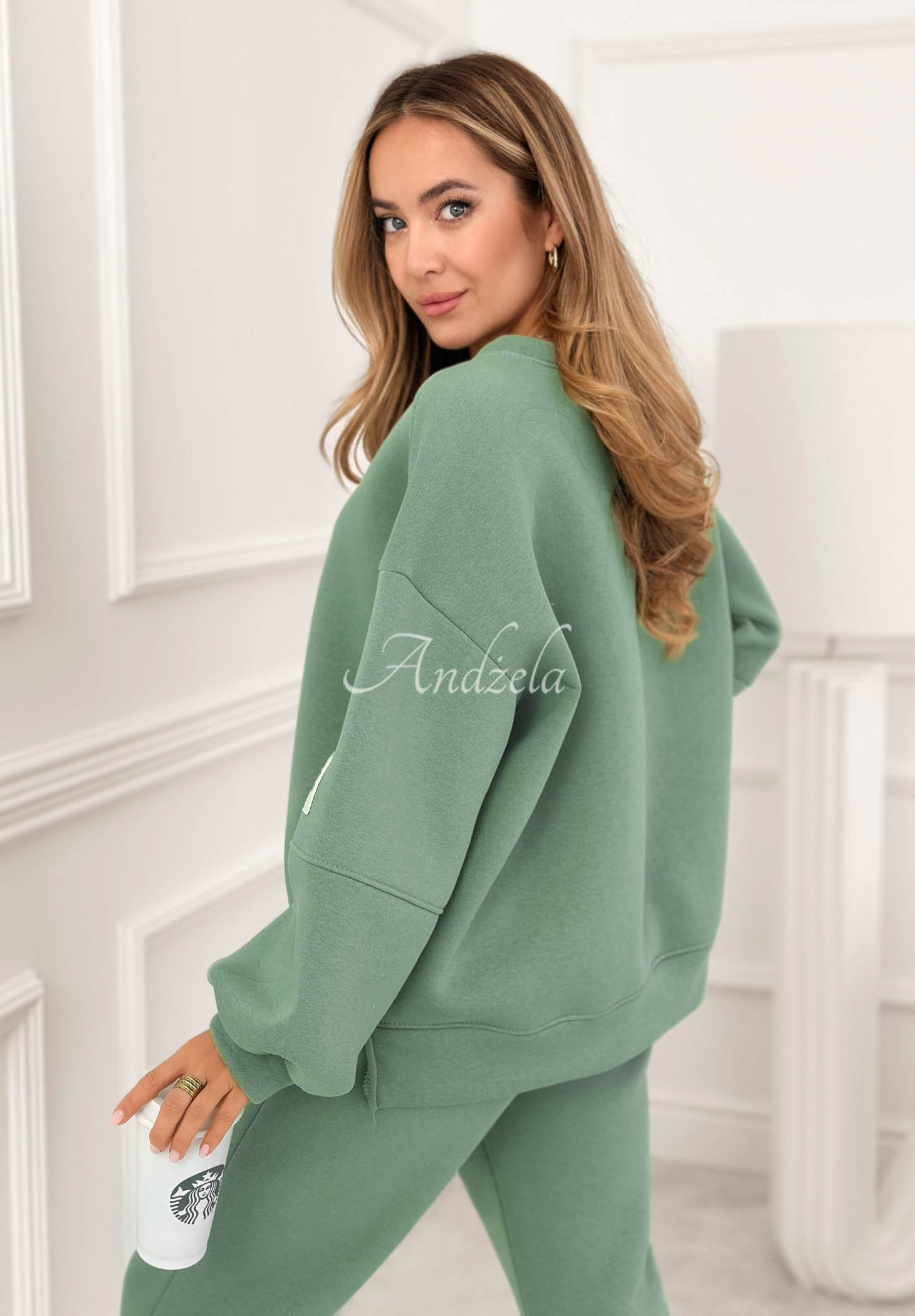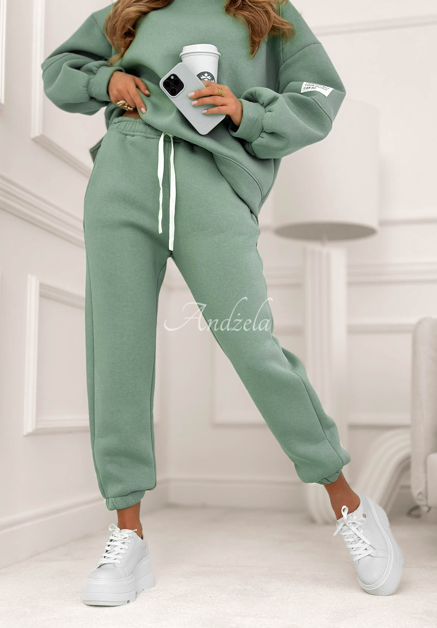 Zateplená tepláková souprava vyrobená z bavlněného materiálu. Mikina s kulatým výstřihem vyniká nášivkou na rukávu. Kalhoty se zvýšeným pasem mají elastickou gumu v pase a lemy na koncích nohavic.