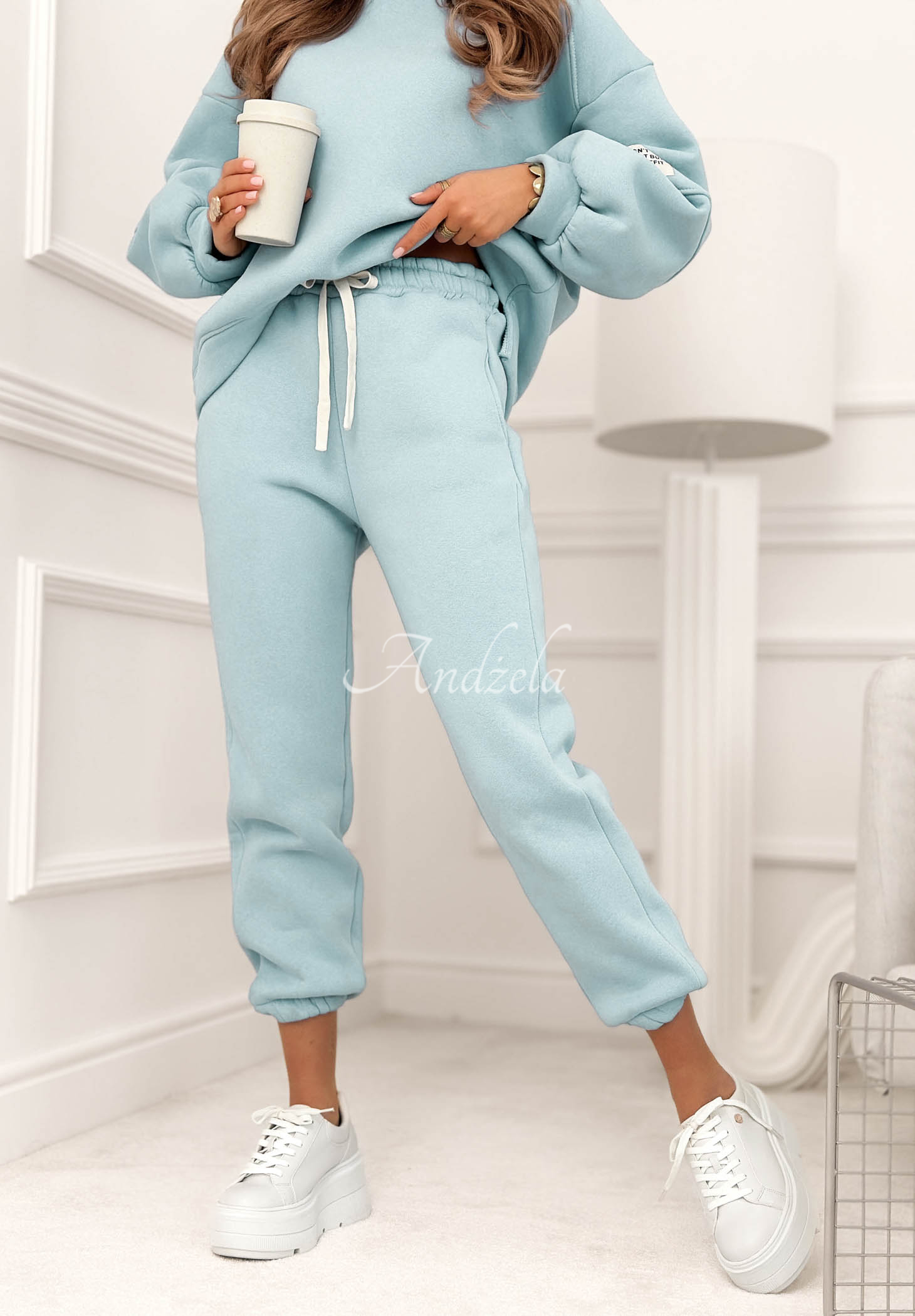 Zateplená tepláková souprava vyrobená z bavlněného materiálu. Mikina s kulatým výstřihem vyniká nášivkou na rukávu. Kalhoty se zvýšeným pasem mají elastickou gumu v pase a lemy na koncích nohavic.