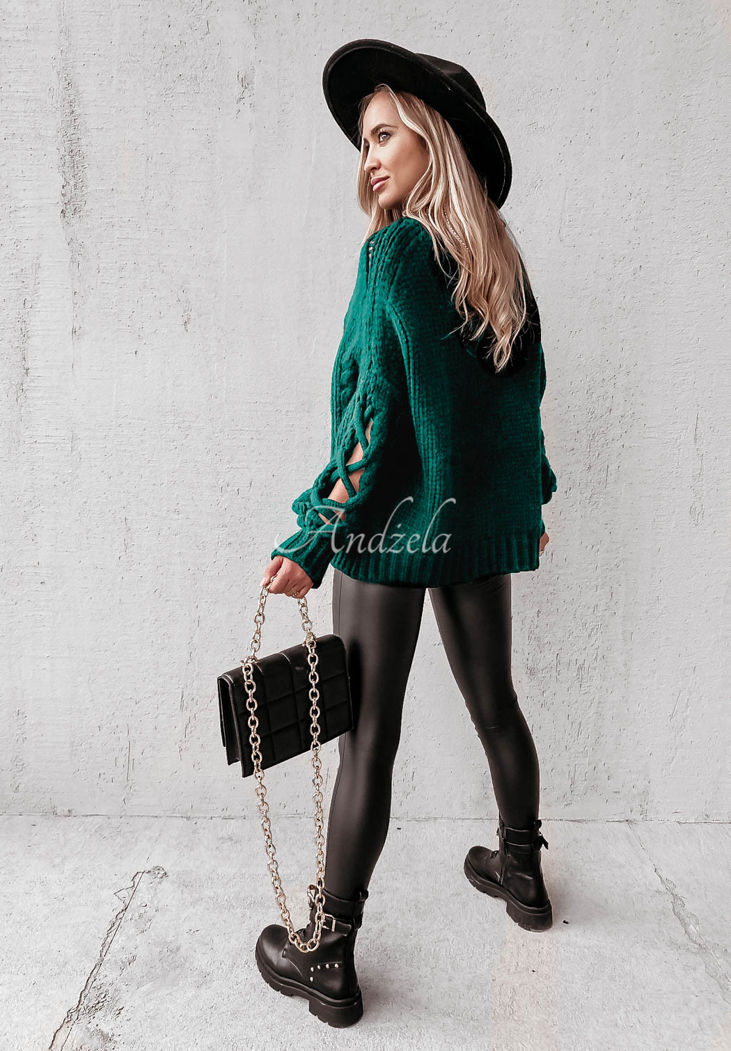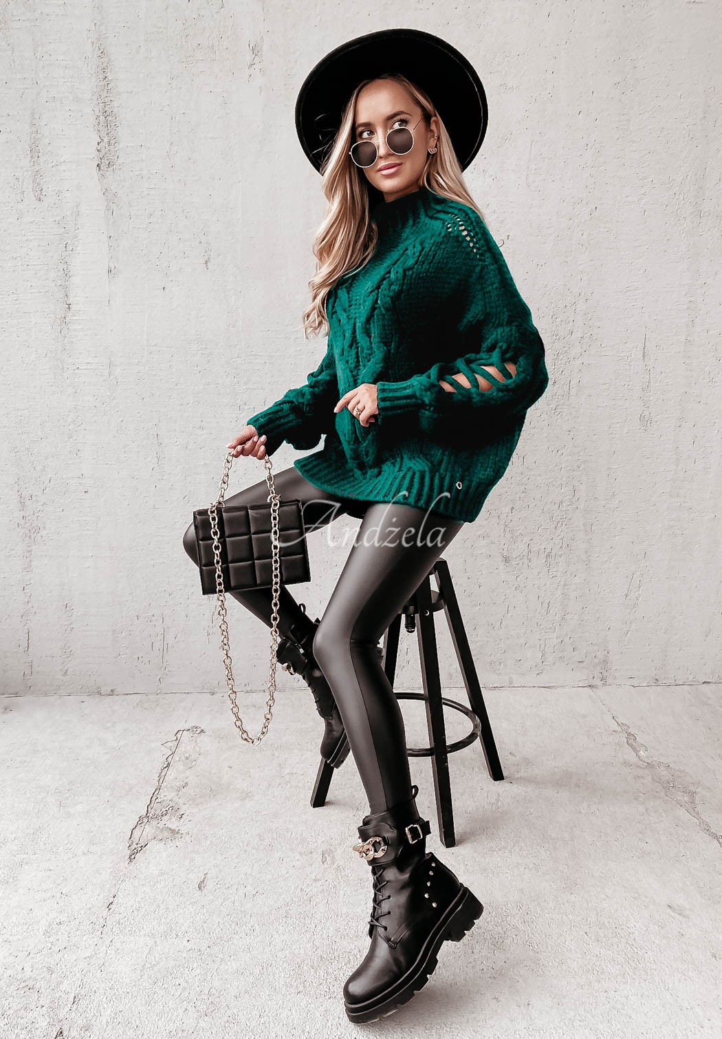 Krásný svetr s ozdobnou vazbou je perfektní volbou pro podzimní a zimní stylizace. Vyznačuje se originálními rukávy, které mu dodávají charakter. Oversize model má stojáček. Krásně se bude prezentovat v elegantních i sportovních stylizacích. Produkt je dostupný v několika barevných variantách.