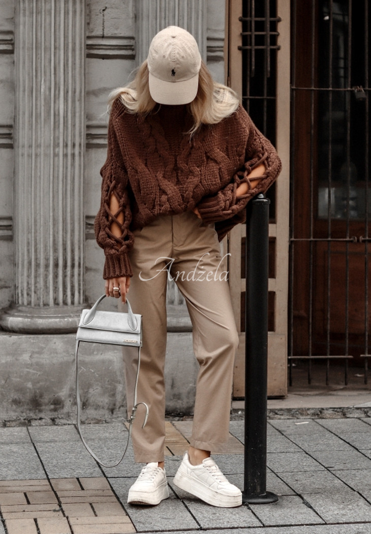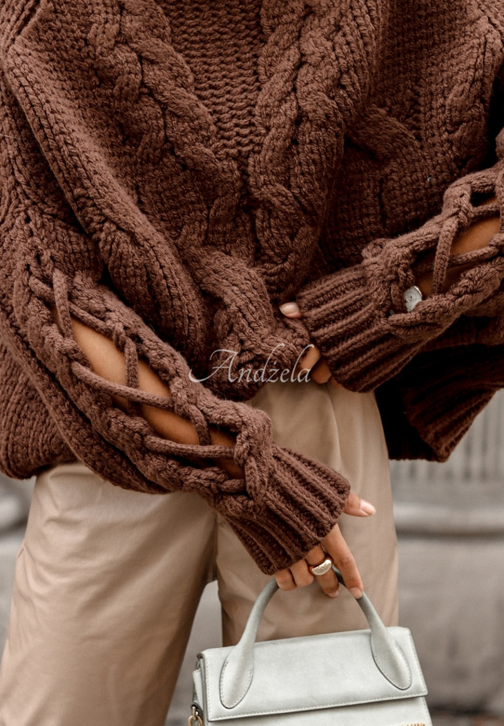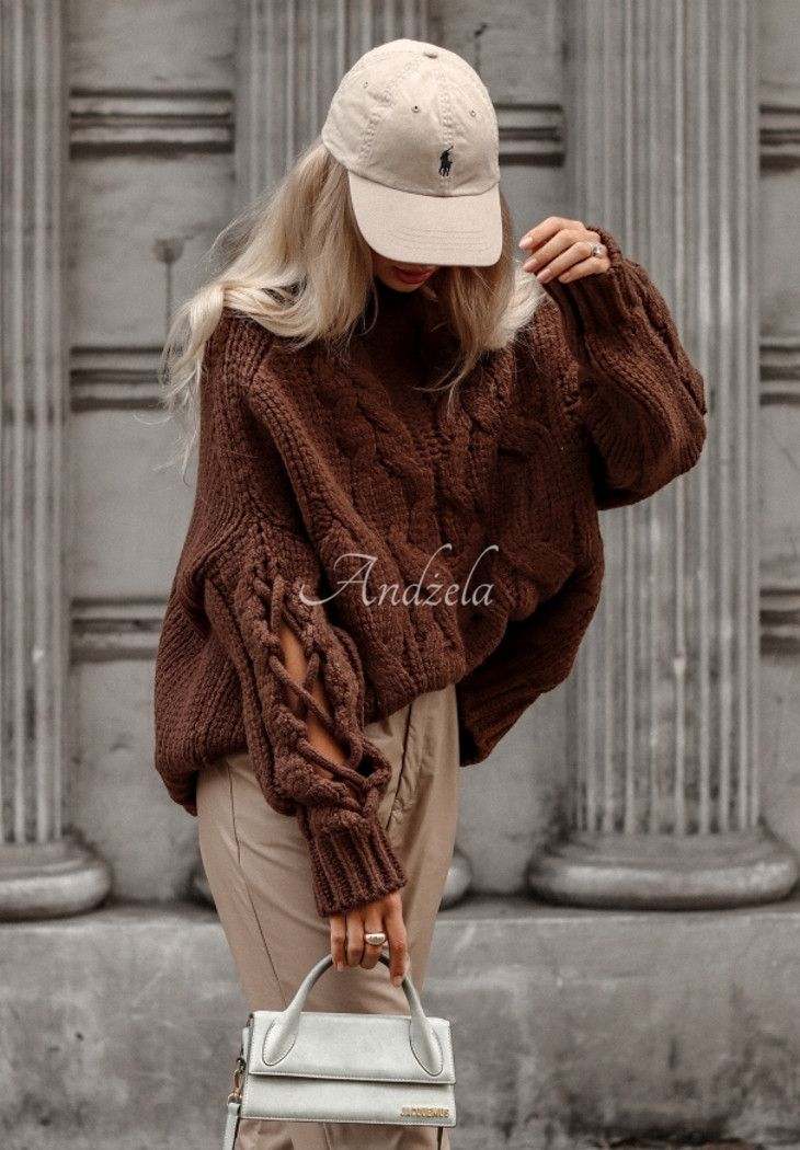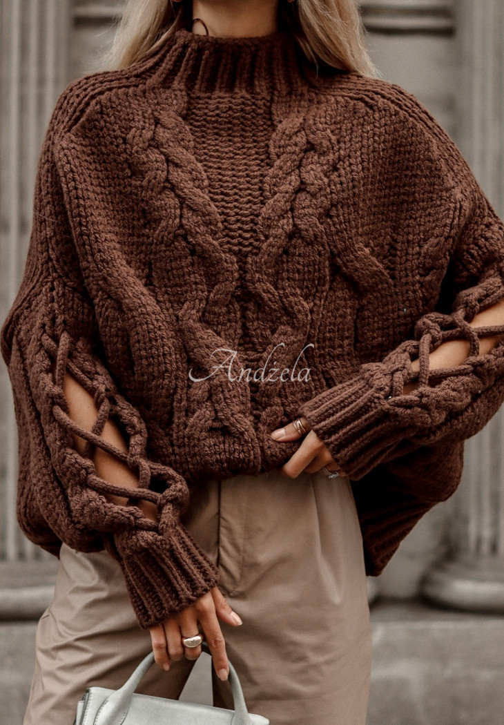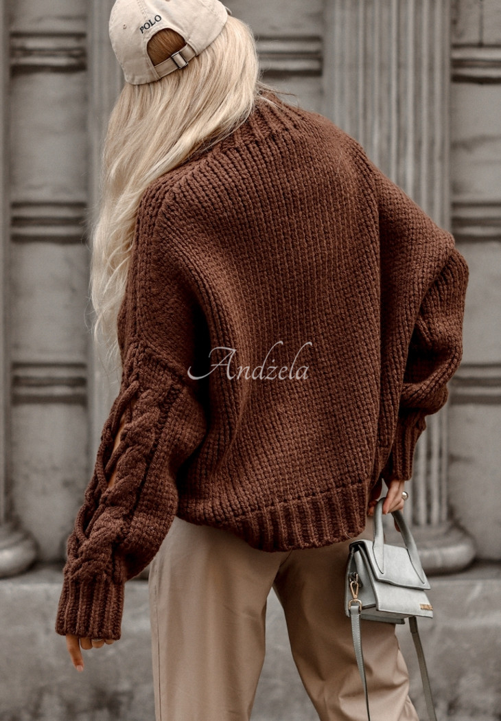 Krásný svetr s ozdobnou vazbou je perfektní volbou pro podzimní a zimní stylizace. Vyznačuje se originálními rukávy, které mu dodávají charakter. Oversize model má stojáček. Krásně se bude prezentovat v elegantních i sportovních stylizacích. Produkt je dostupný v několika barevných variantách.