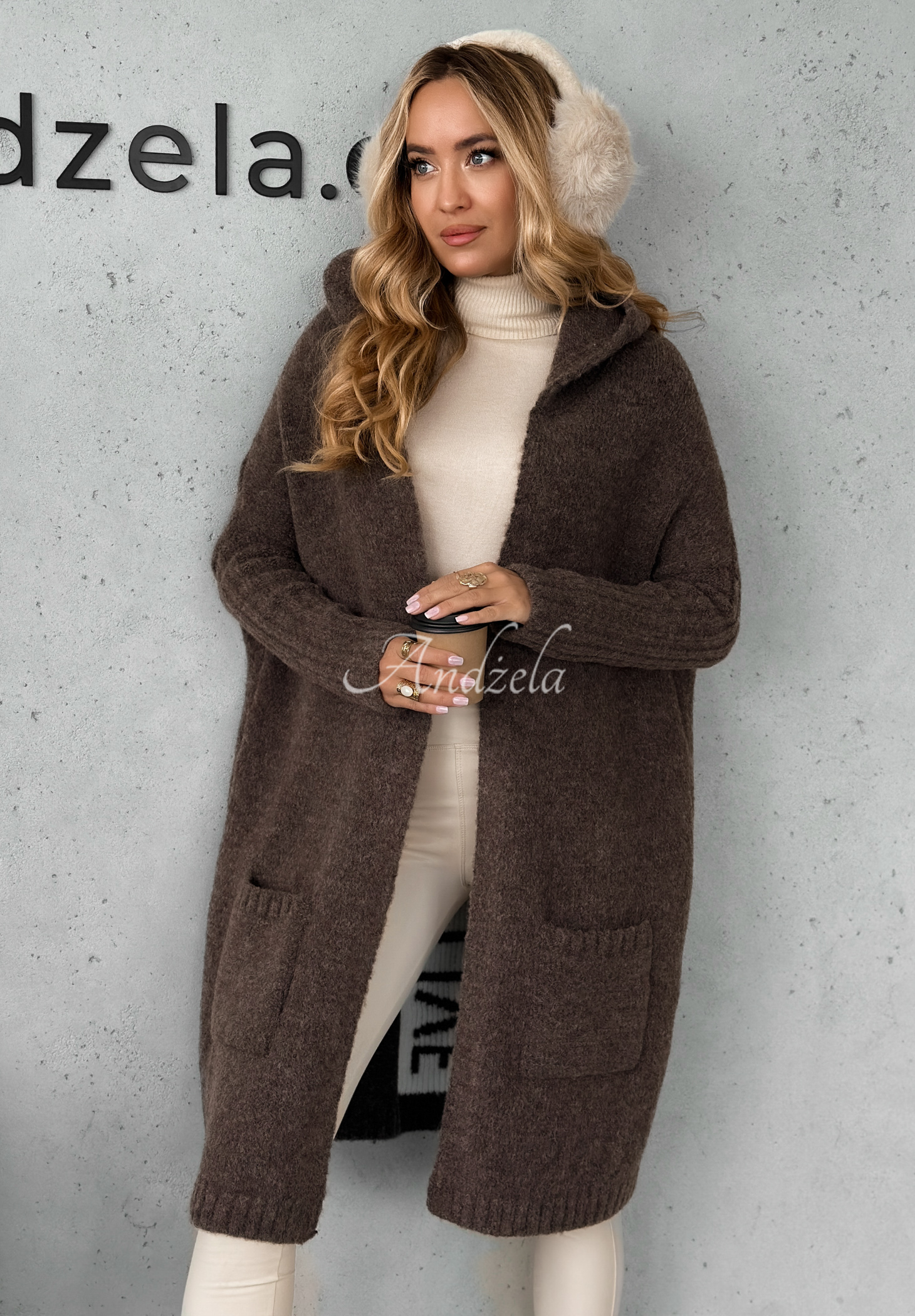 Dlouhý kardigan s příměsí vlny je tou nejlepší volbou do chladnějších dnů! Má kapuci a kapsy a rukávy jsou zakončeny stahovací gumou. Vyniká nápisy na zadní straně, které dodávají celku jedinečný charakter. Tento oversize model se jistě stane jedničkou v mnoha skříních! Skvěle doplní každodenní look a bude vypadat opravdu módně. Produkt je dostupný v mnoha barevných variantách.