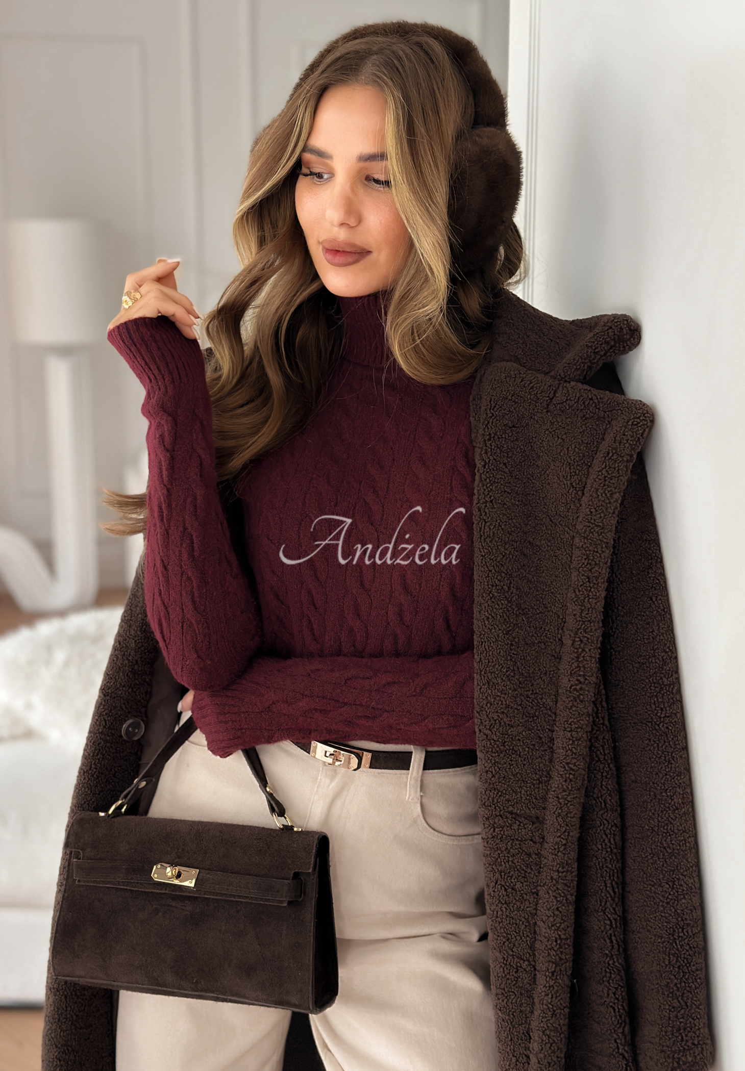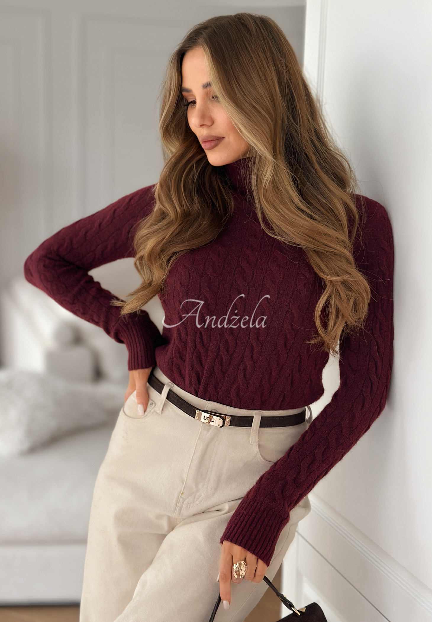Ozdobně pletený svetr s rolákem I Love Cold vínový